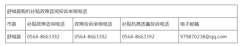舒城县购机补贴政策咨询投诉举报电话