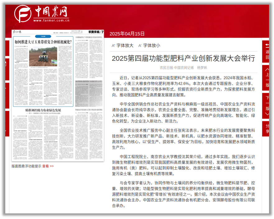 【农民日报】2025第四届功能型肥料产业创新发展大会举行