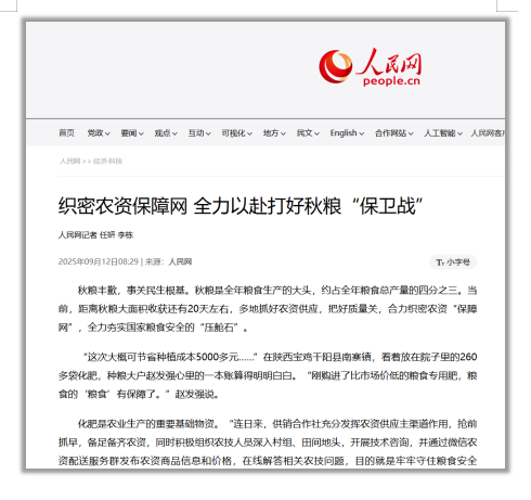 打好秋粮“保卫战”既是对农资供应的考验,更是对责任担当的检验,优质且稳定供应的农资有助于提高秋粮品质。经验证明,使用质量可靠的种子、化肥和农药,能减少作物生长过程中的病虫害和生长不良问题,生产出的粮食在外观、口感和营养成分等方面更优质,符合市场需求,同时也有利于提高单位面积产量。