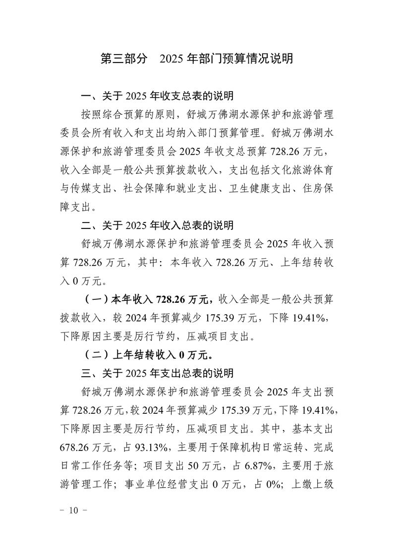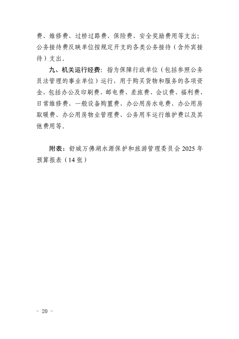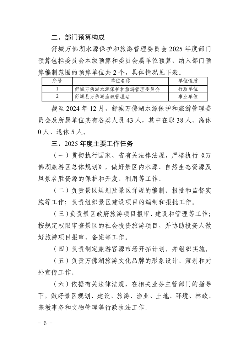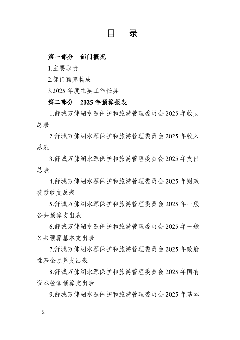 舒城万佛湖水源保护和旅游管理委员会2025年部门预算公开