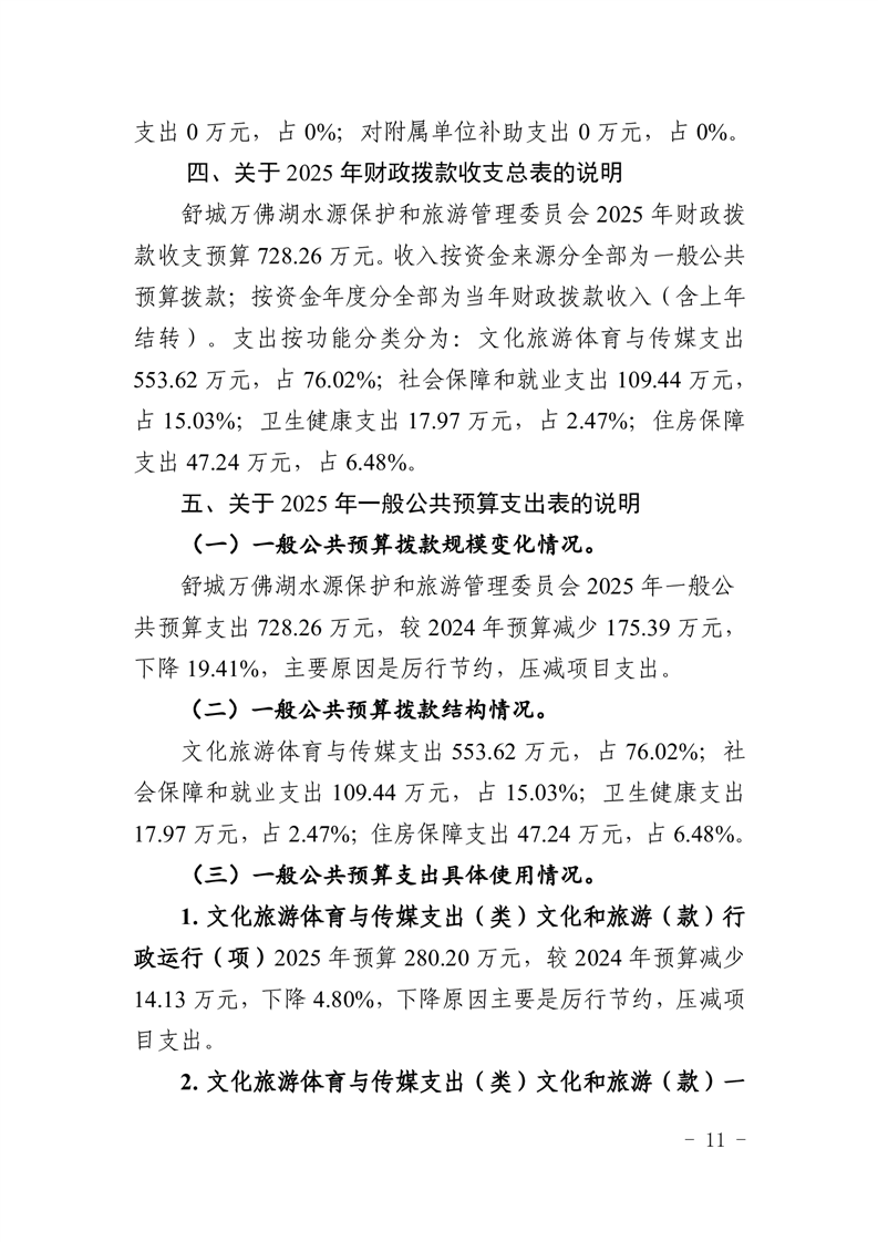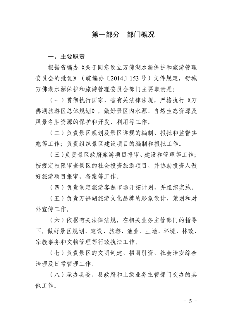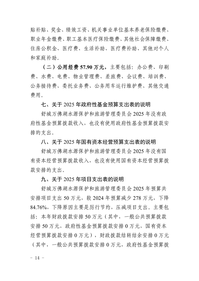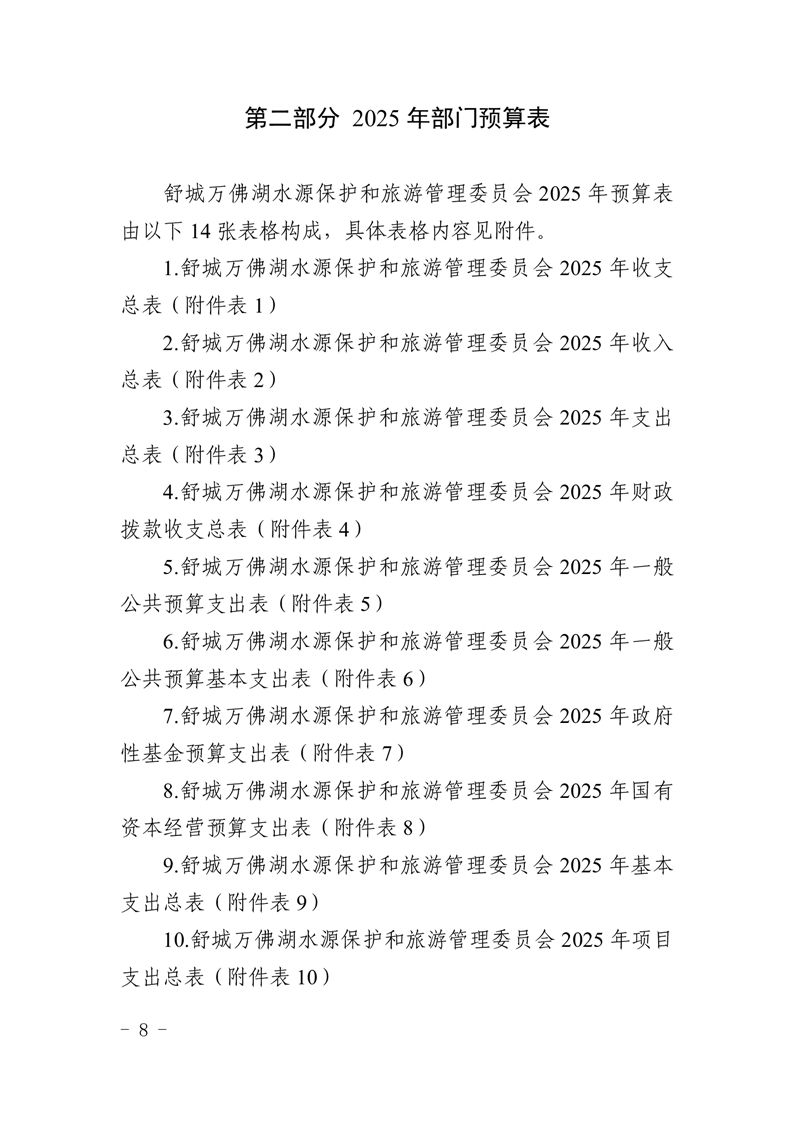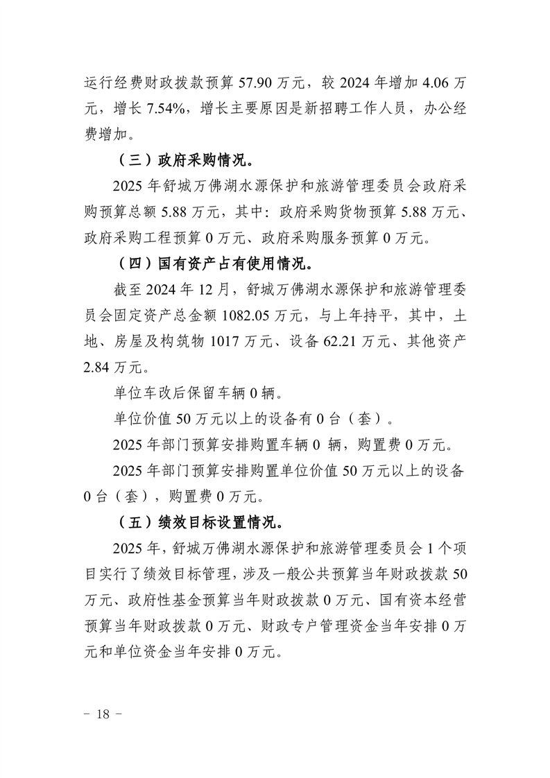 舒城万佛湖水源保护和旅游管理委员会2025年部门预算公开