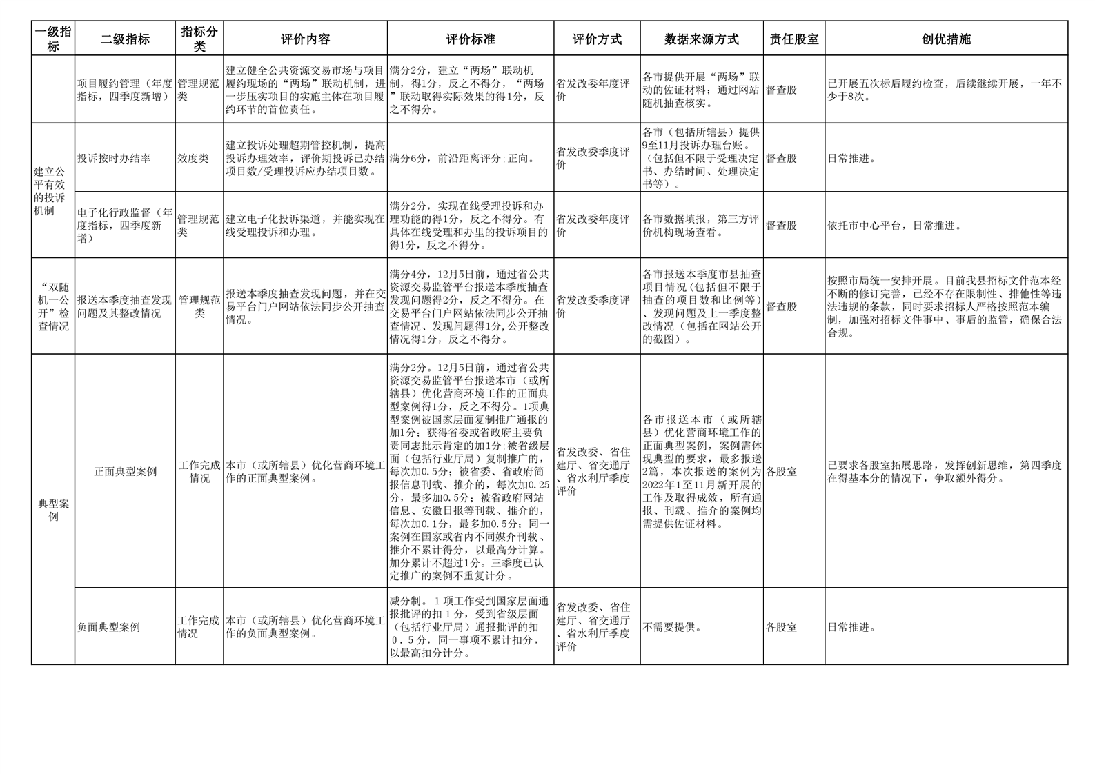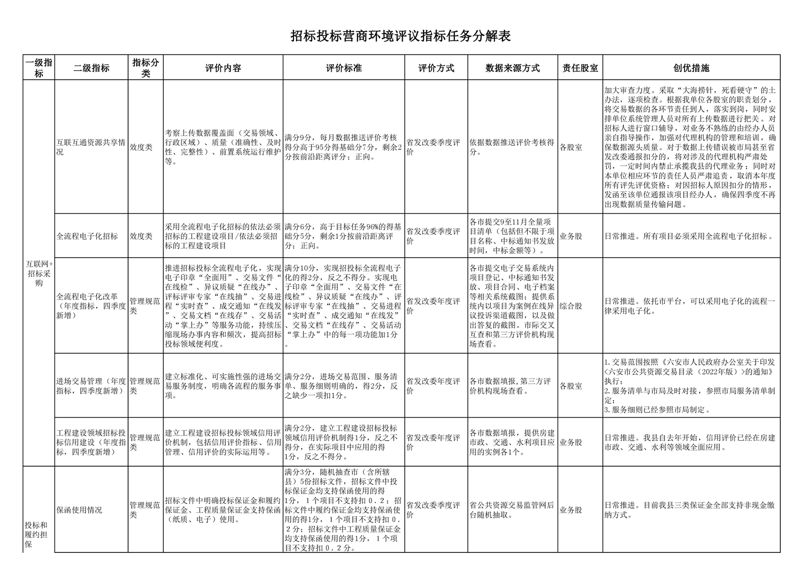 舒城县公共资源交易中心2022年度招标投标营商环境评议细则任务分解表