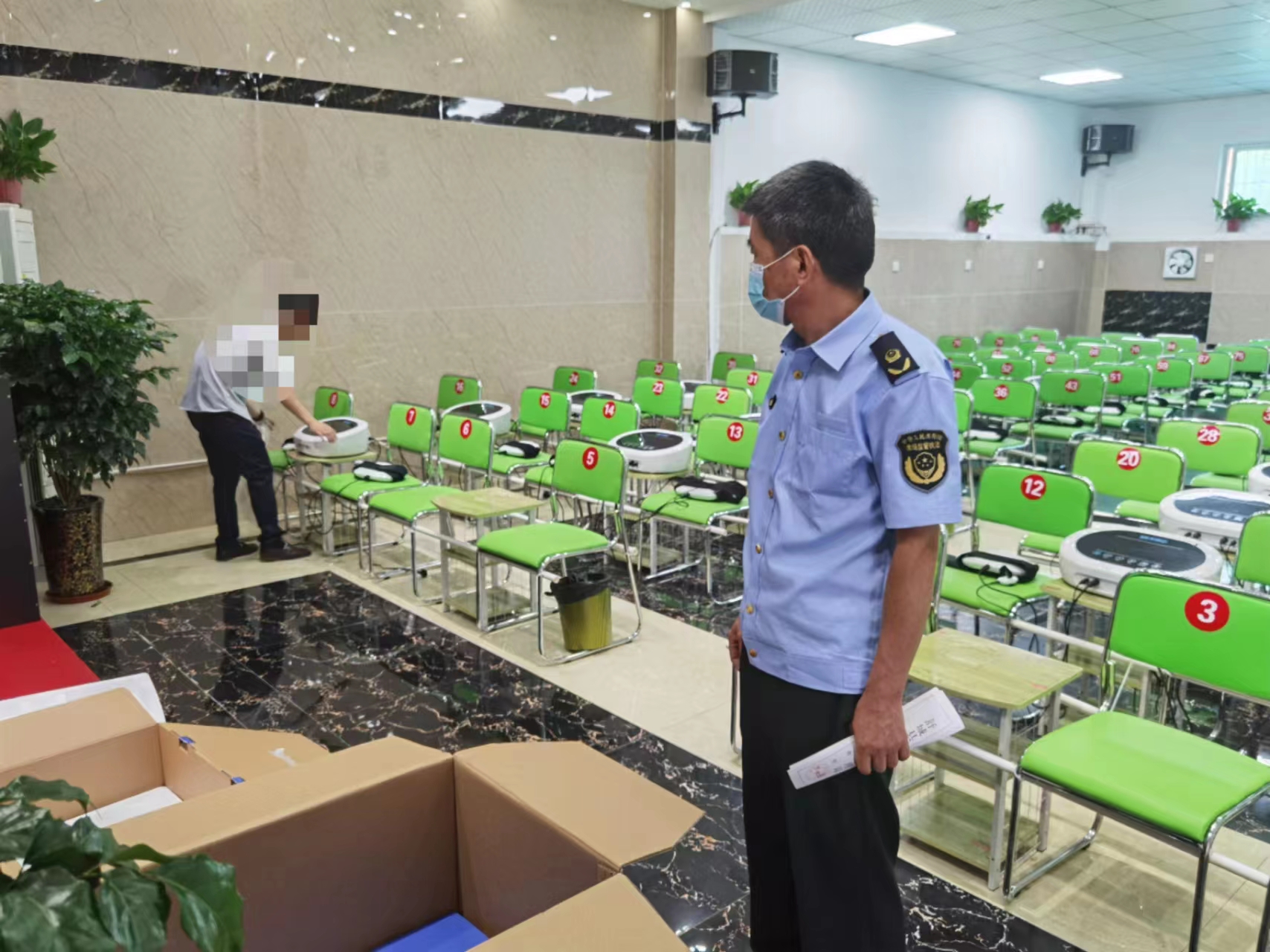经过初步调查后得知,该体验场所每天召集中老年人群到场听课、喊口号、免费体验产品、赠送礼品,然后以一套8000元左右的高价兜售红蓝光治疗仪。执法人员在取得相关证据后对现场体验的中老年群众予以劝离疏散,依法扣押了涉嫌虚假宣传的笔记本电脑、宣讲课件、视频资料、相关证据材料和红蓝光治疗仪20台,对当事人进行立案调查。目前,此案正在处理中。