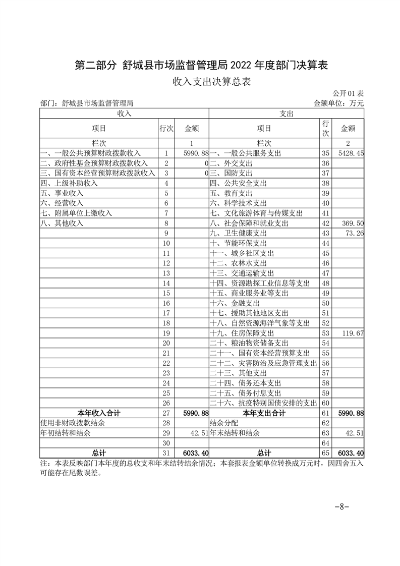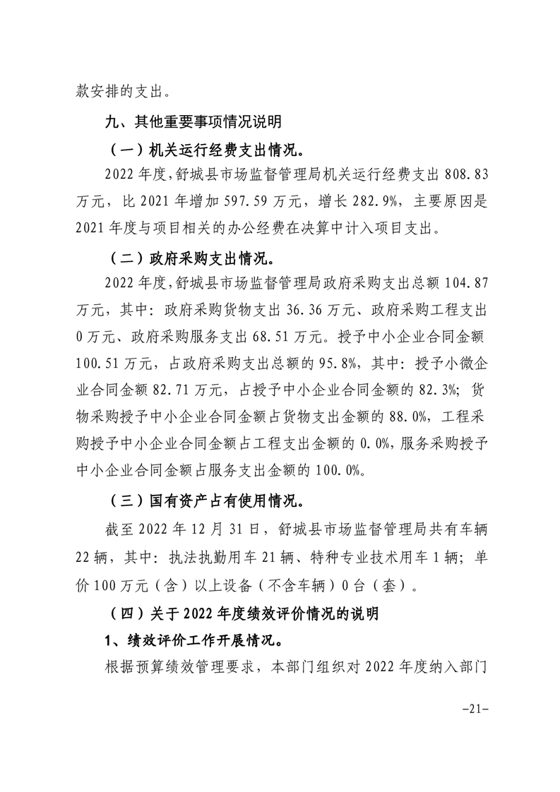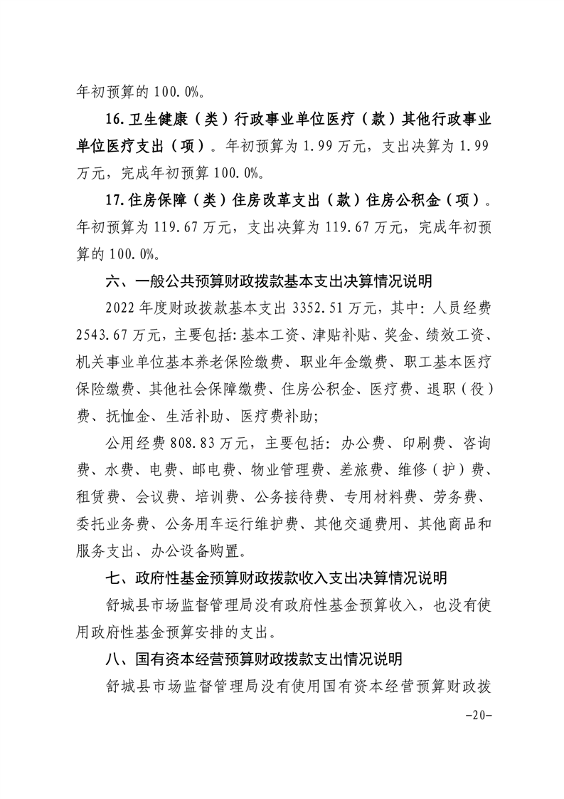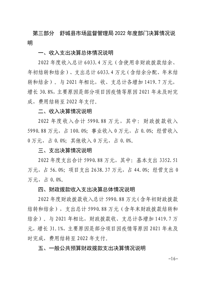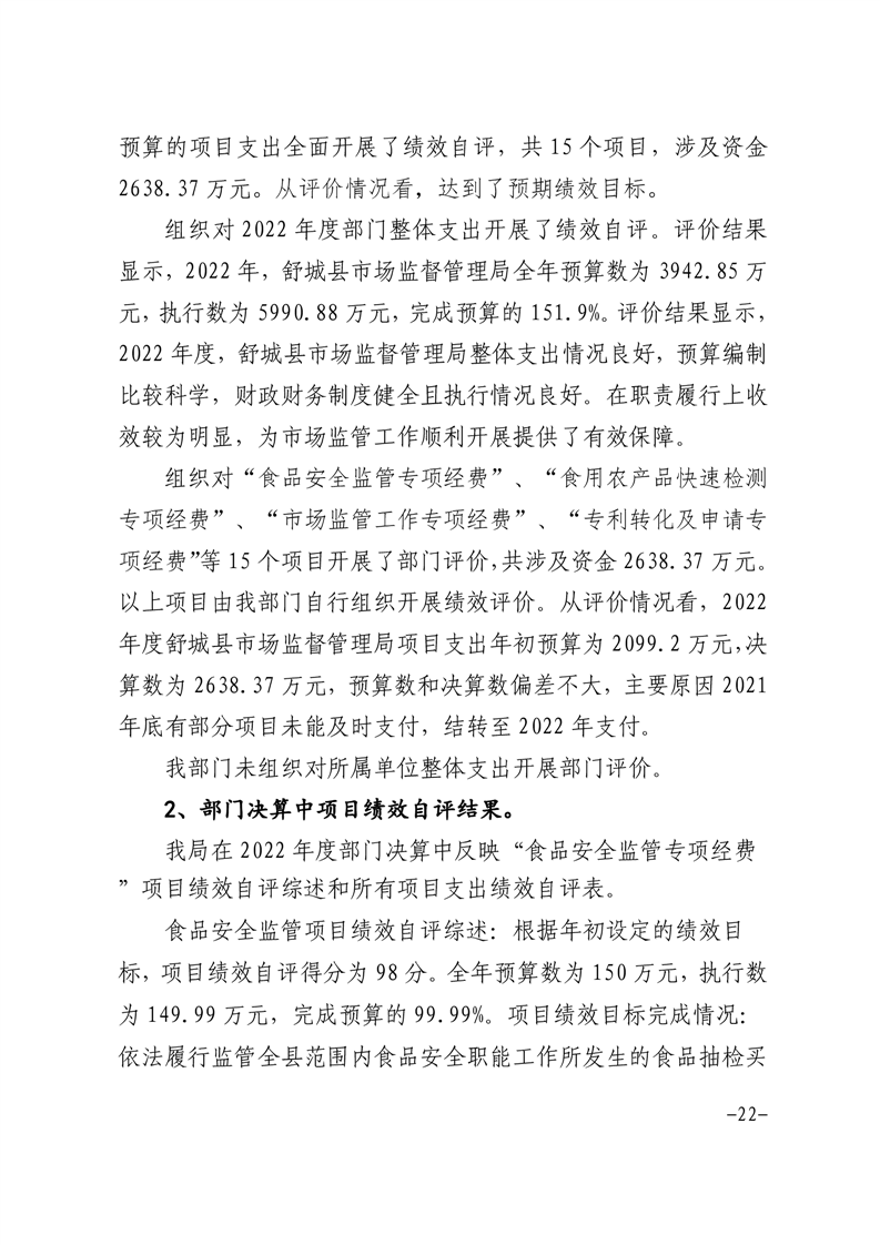 舒城县市场监管局2022年部门决算情况