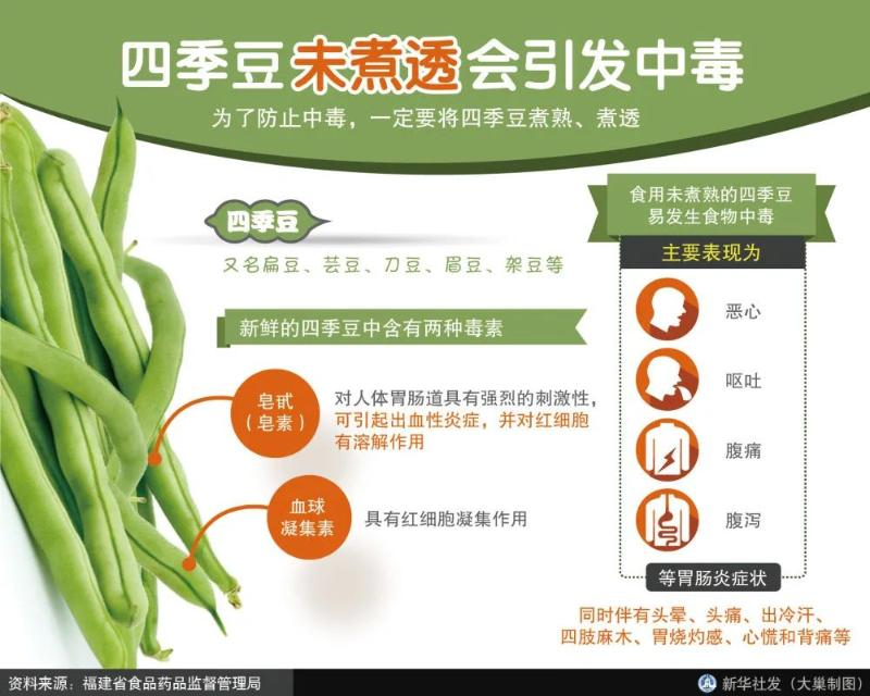 西南医科大学附属医院急诊医学部副主任医师曹洪英提示,四季豆中毒症状一般发生在进食烹饪不当的四季豆后1.5-4小时。主要为胃肠道症状,表现为恶心、呕吐、腹痛、腹泻等,也可能伴随头痛、头晕、胸闷、心慌、冷汗、脱水、胃灼烧感、四肢麻木等症状。重度中毒还可能进一步出现嗜睡、抽搐、意识障碍、呼吸困难、无尿,甚至溶血性贫血、黄疸、血红蛋白尿等症状,威胁生命健康。
