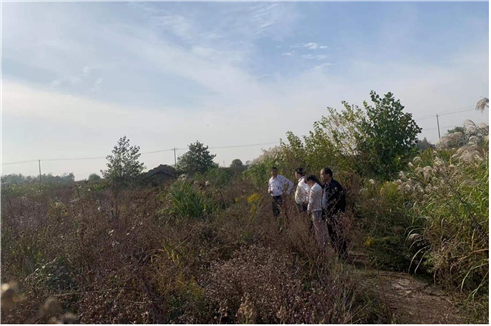 工作队与村“两委”干部现场指导整治官北组抛荒土地