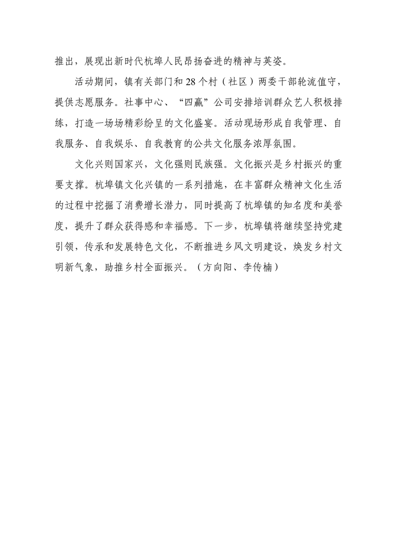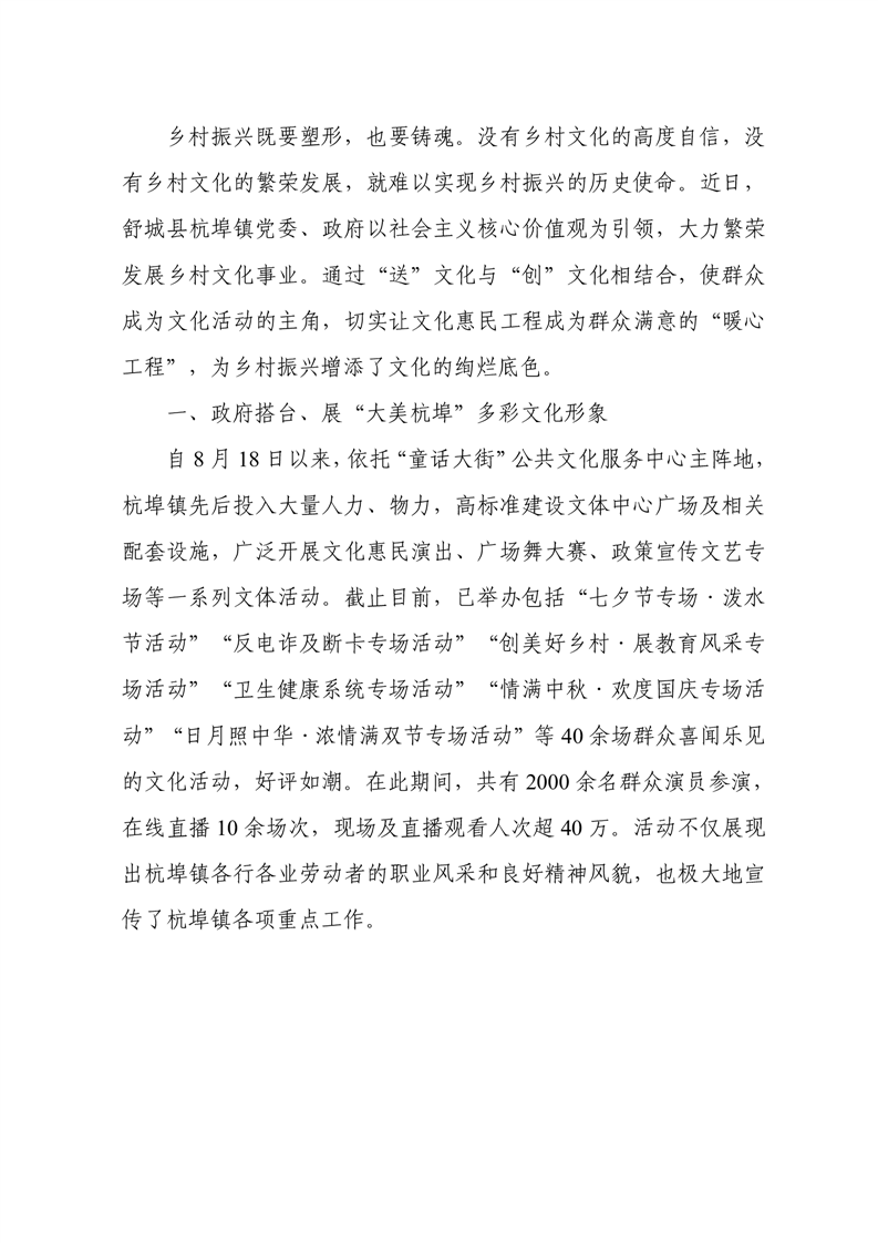 舒城县杭埠镇:政府搭台 群众演绎——打造永不落幕的文化兴镇盛宴