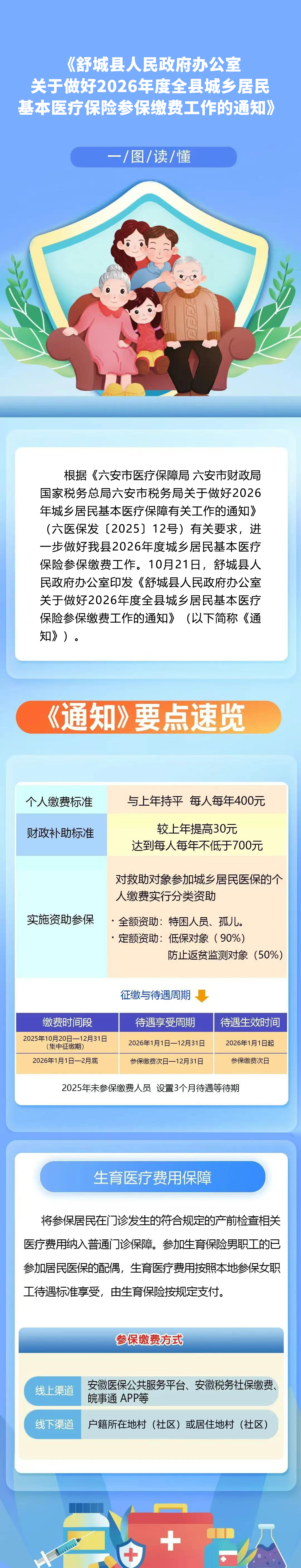 【政策图解】《舒城县人民政府办公室关于做好2026年度全县城乡居民基本医疗保险参保缴费工作的通知》政策解读