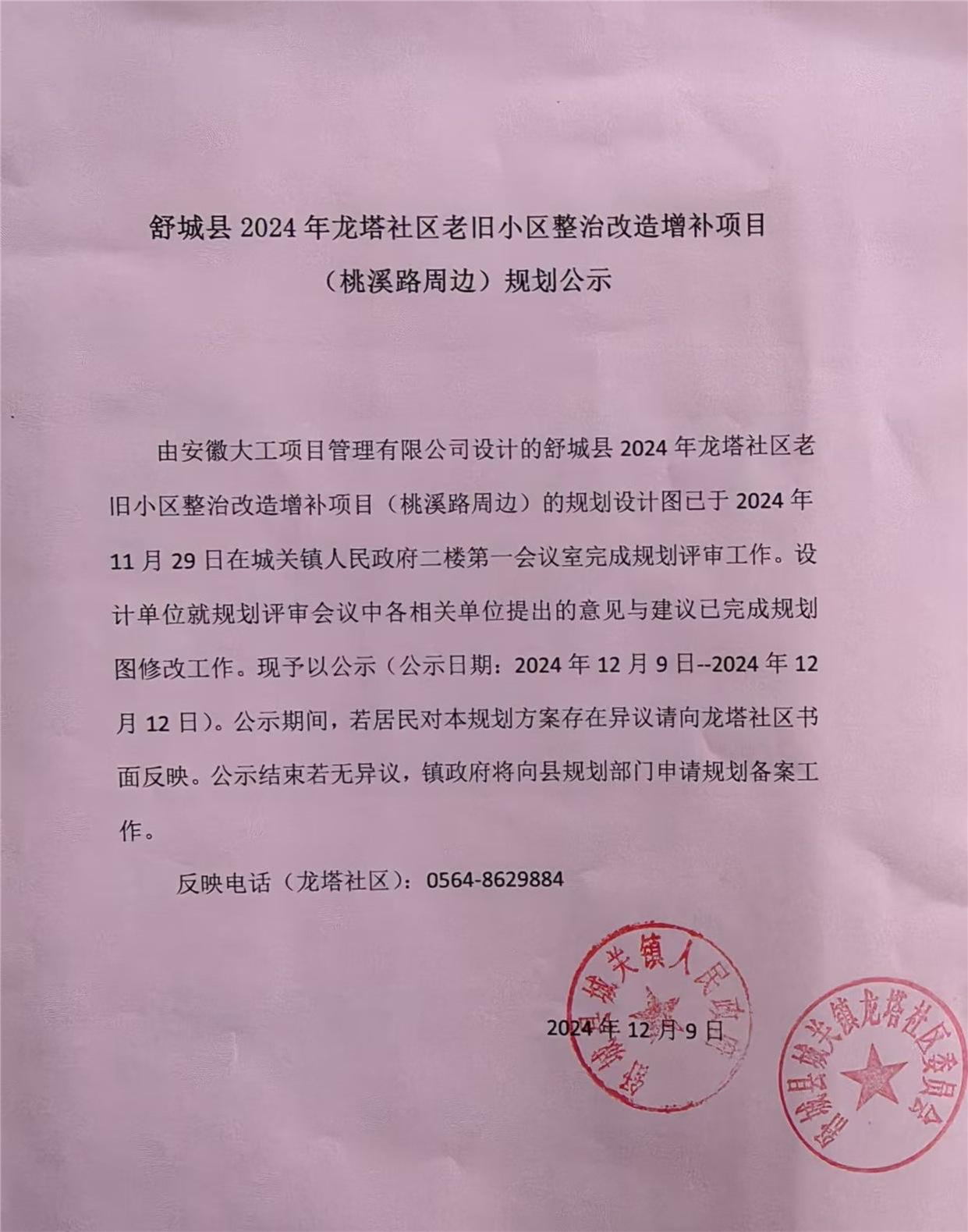 2024年龙塔社区老旧小区整治改造项目(桃溪路周边)项目规划公示