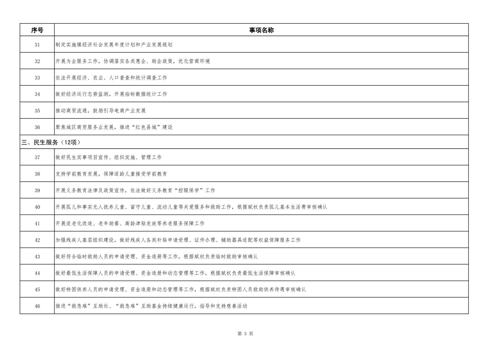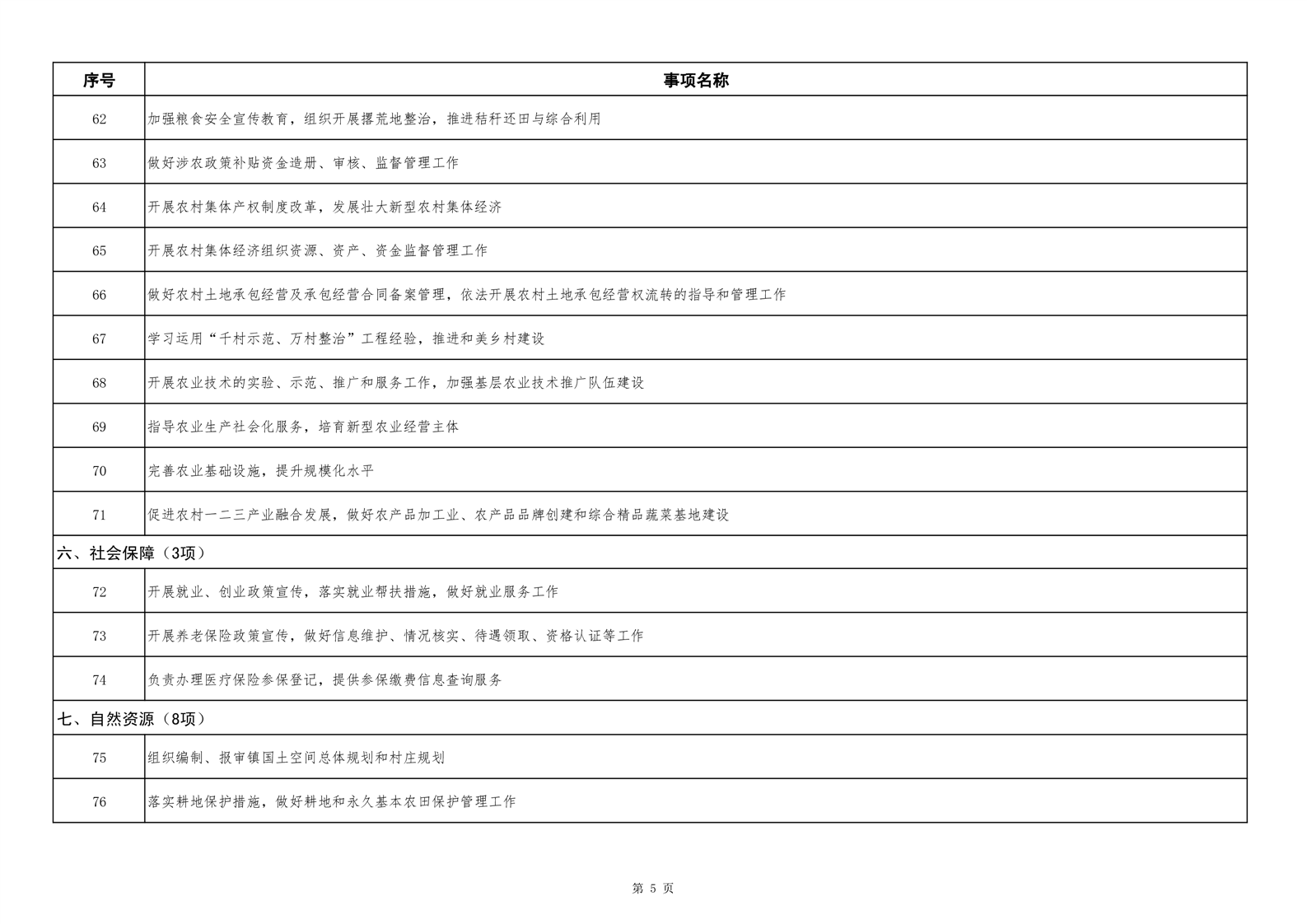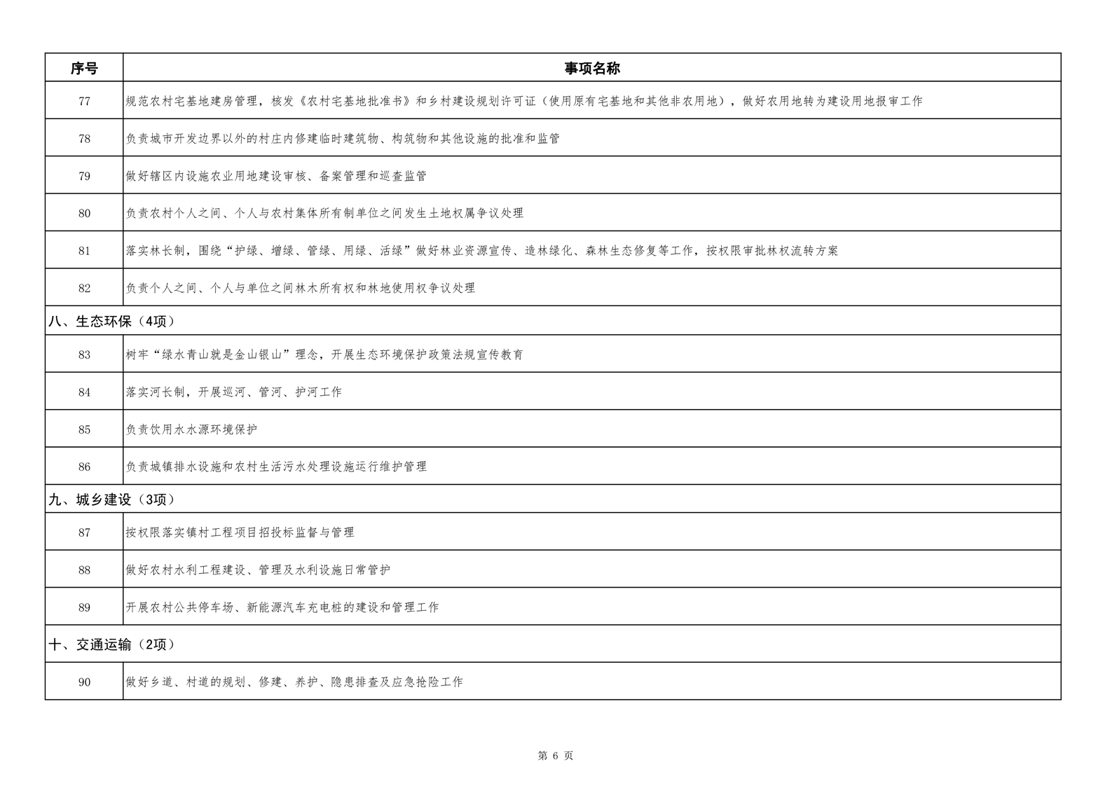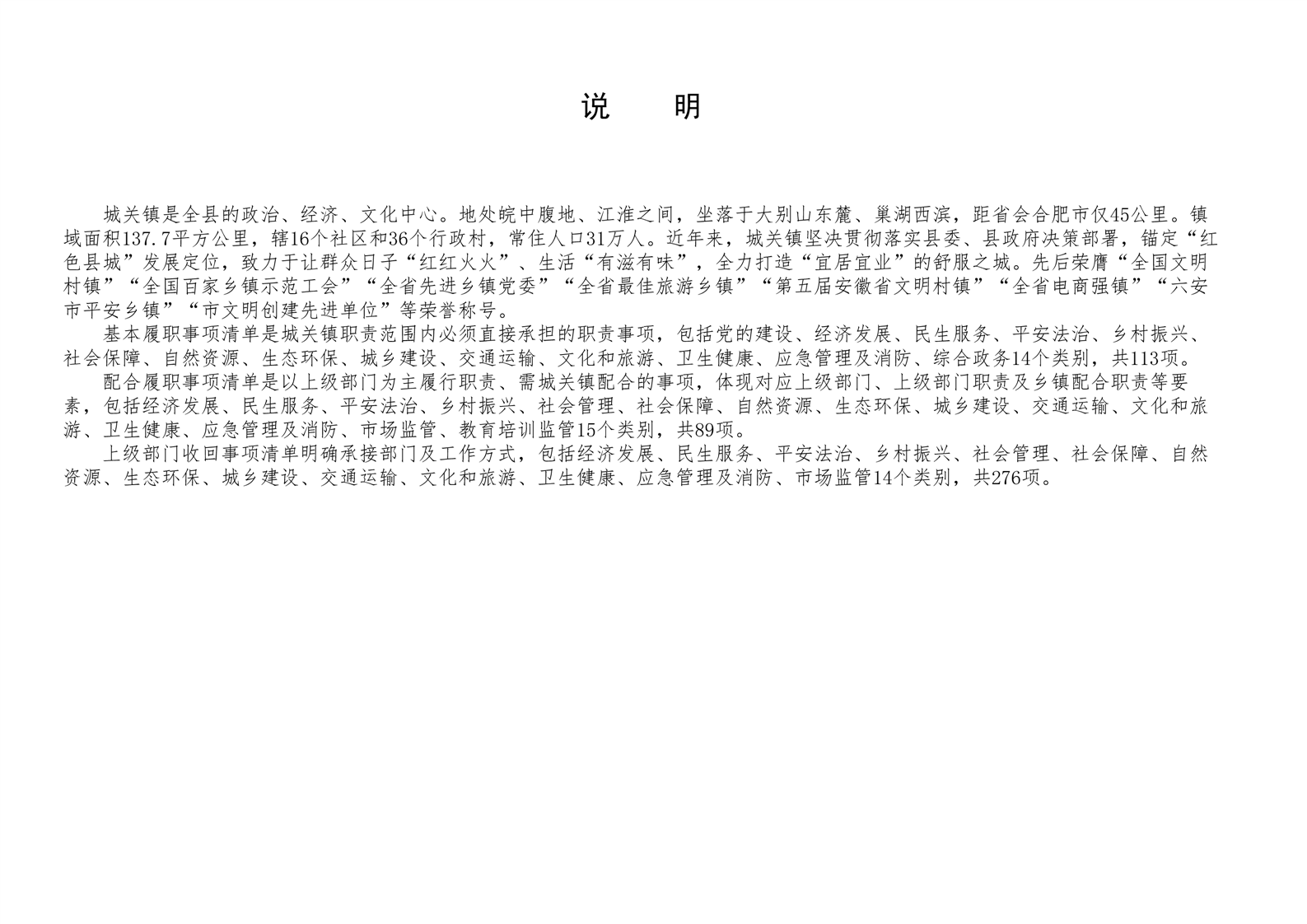 六安市舒城县城关镇履职事项清单