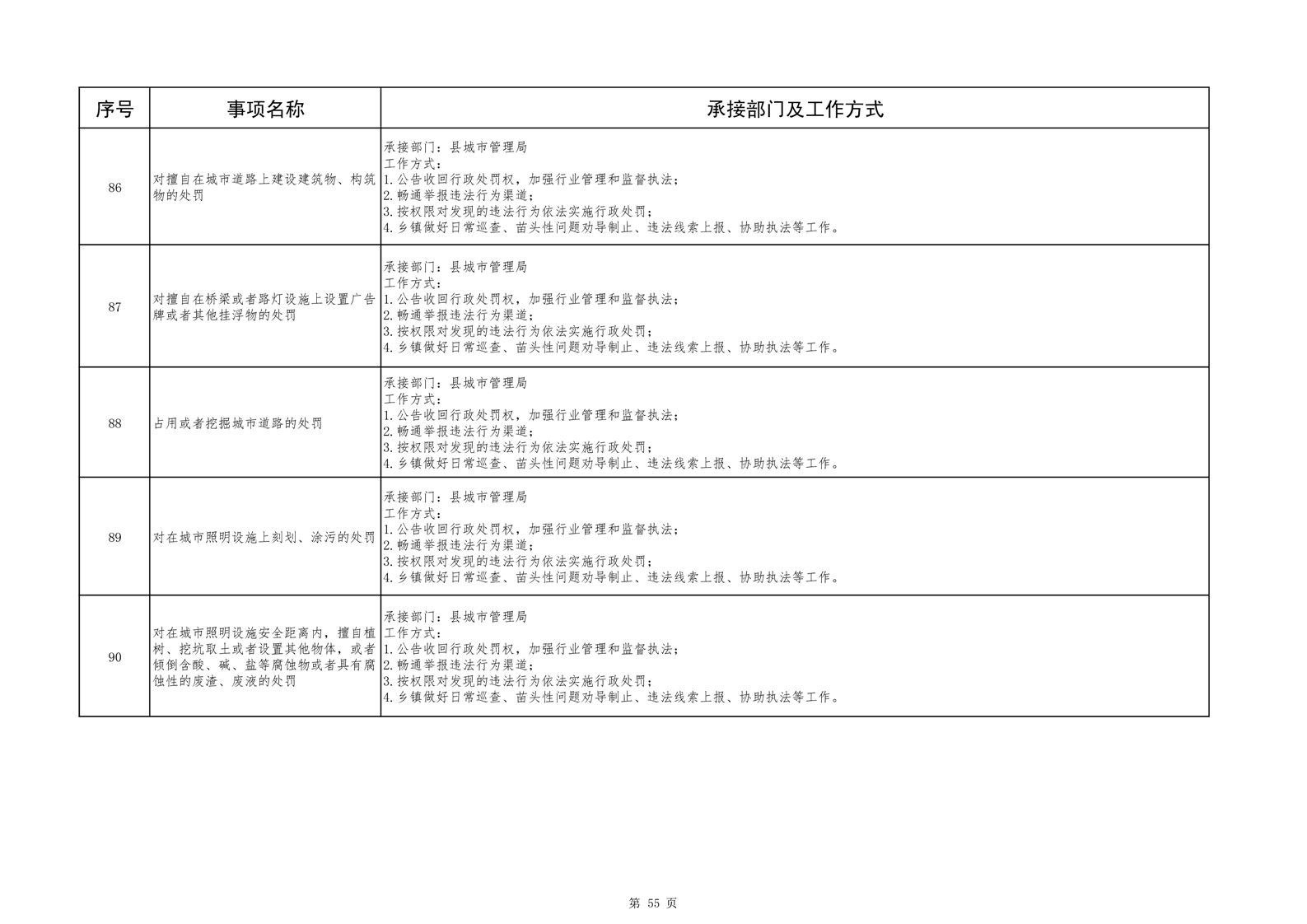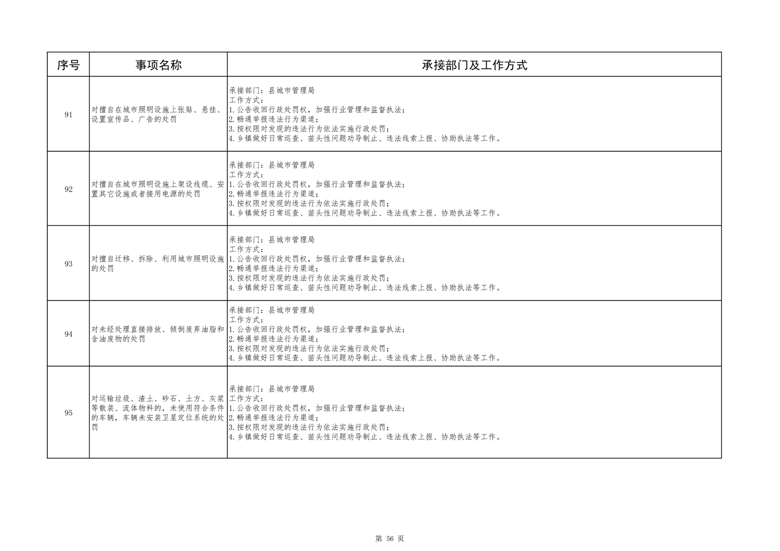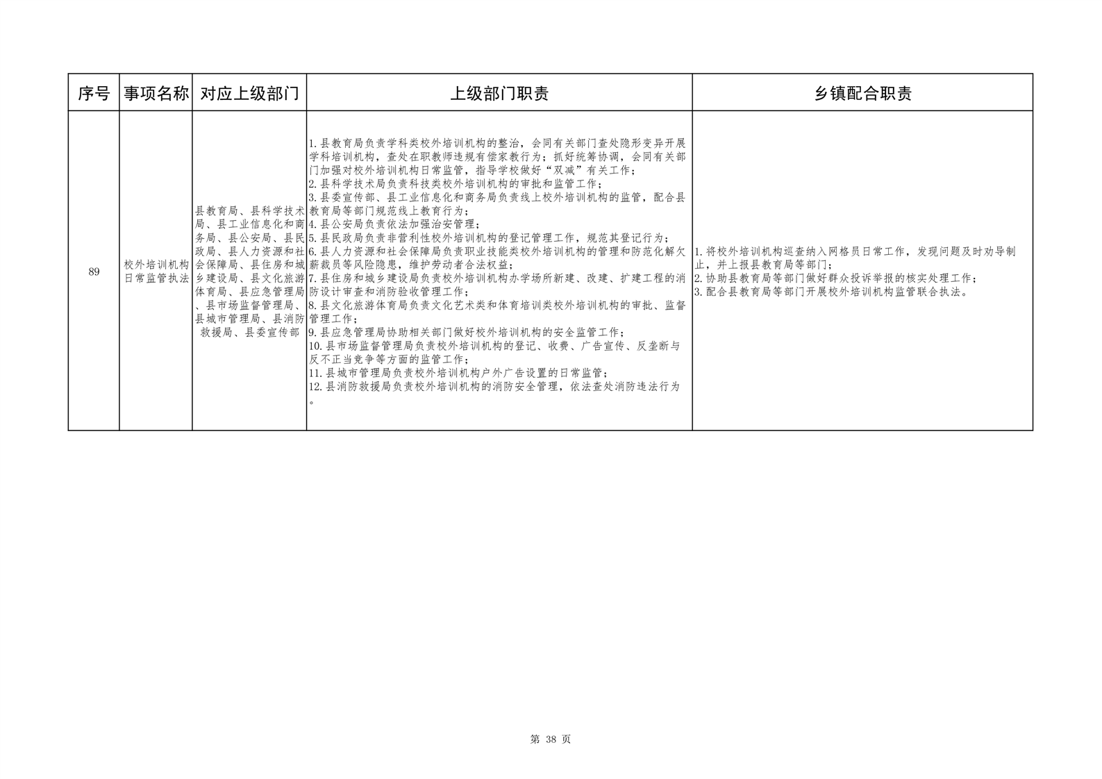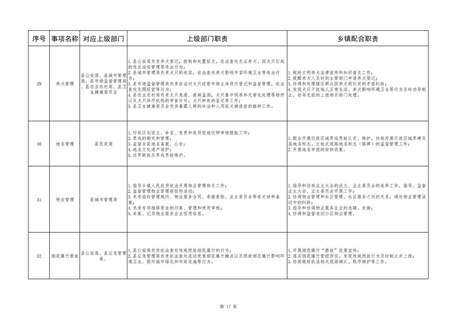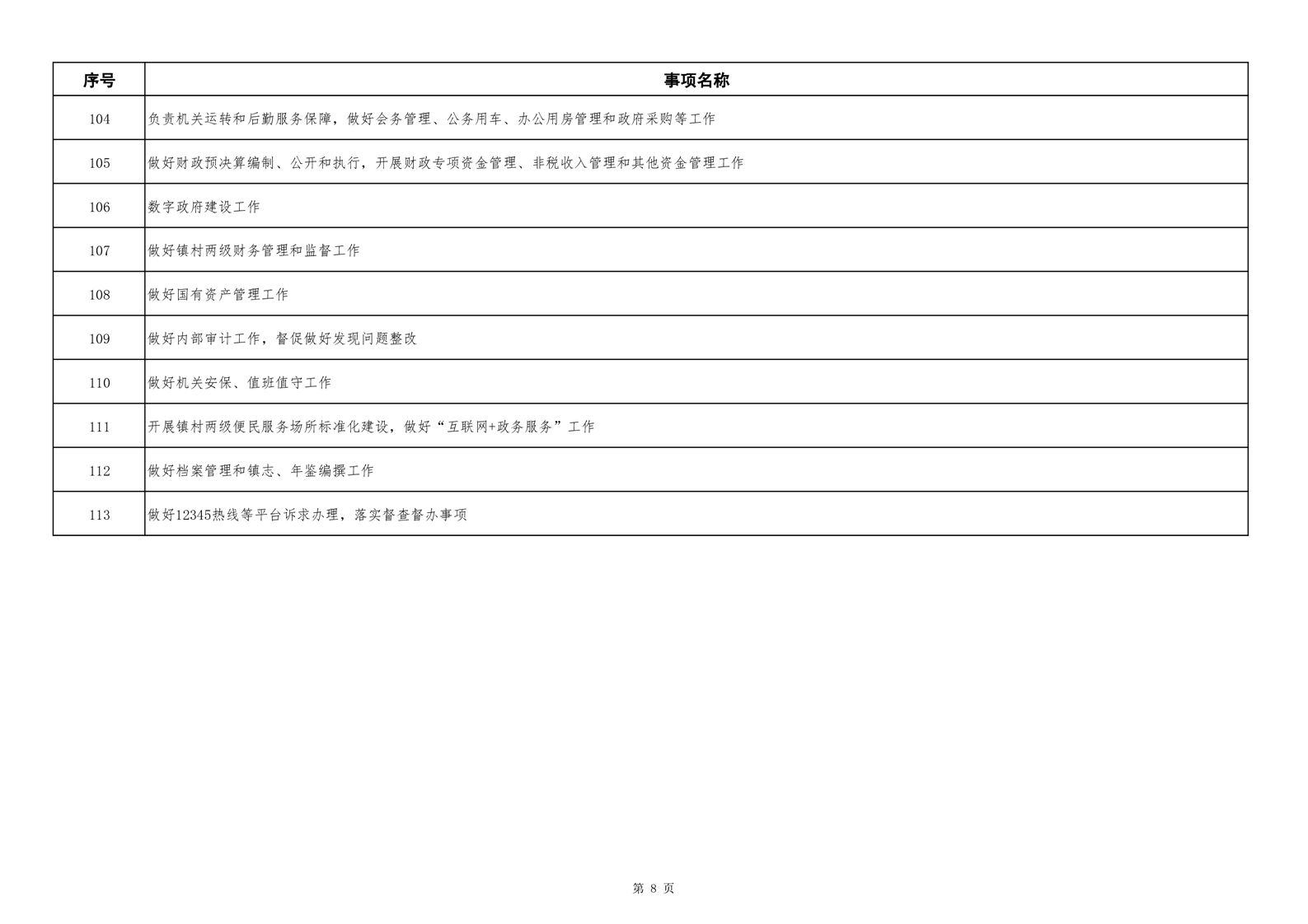 六安市舒城县城关镇履职事项清单