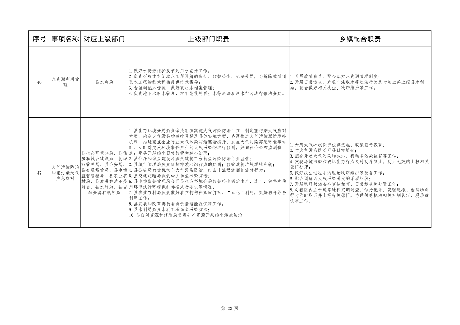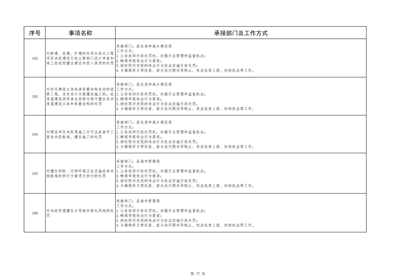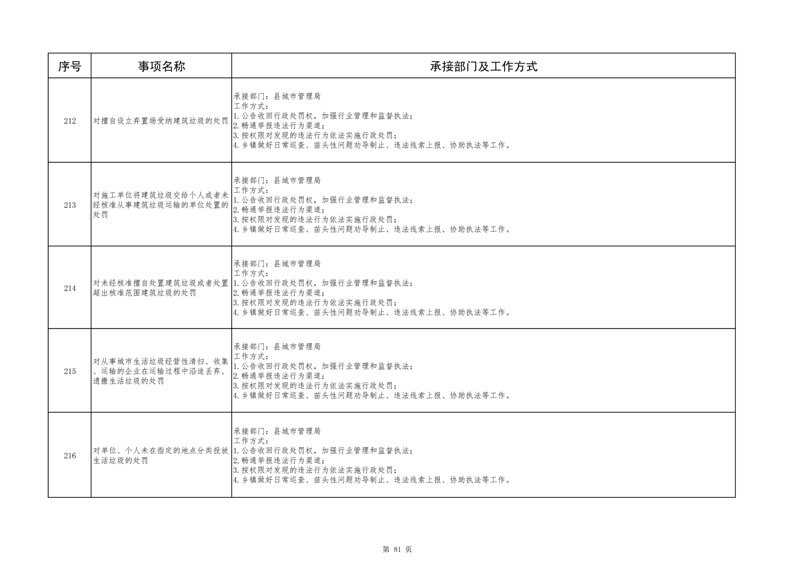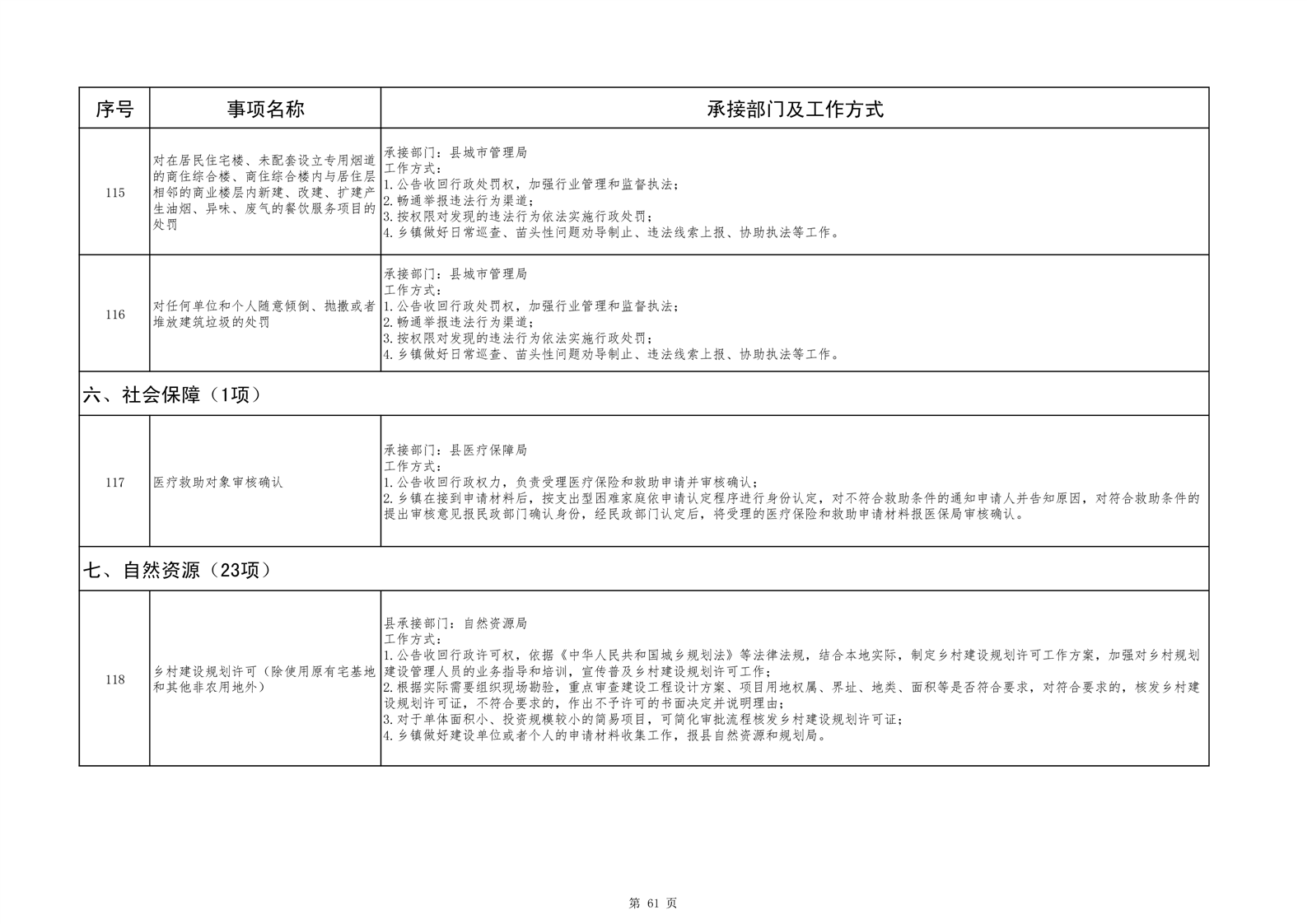 六安市舒城县城关镇履职事项清单