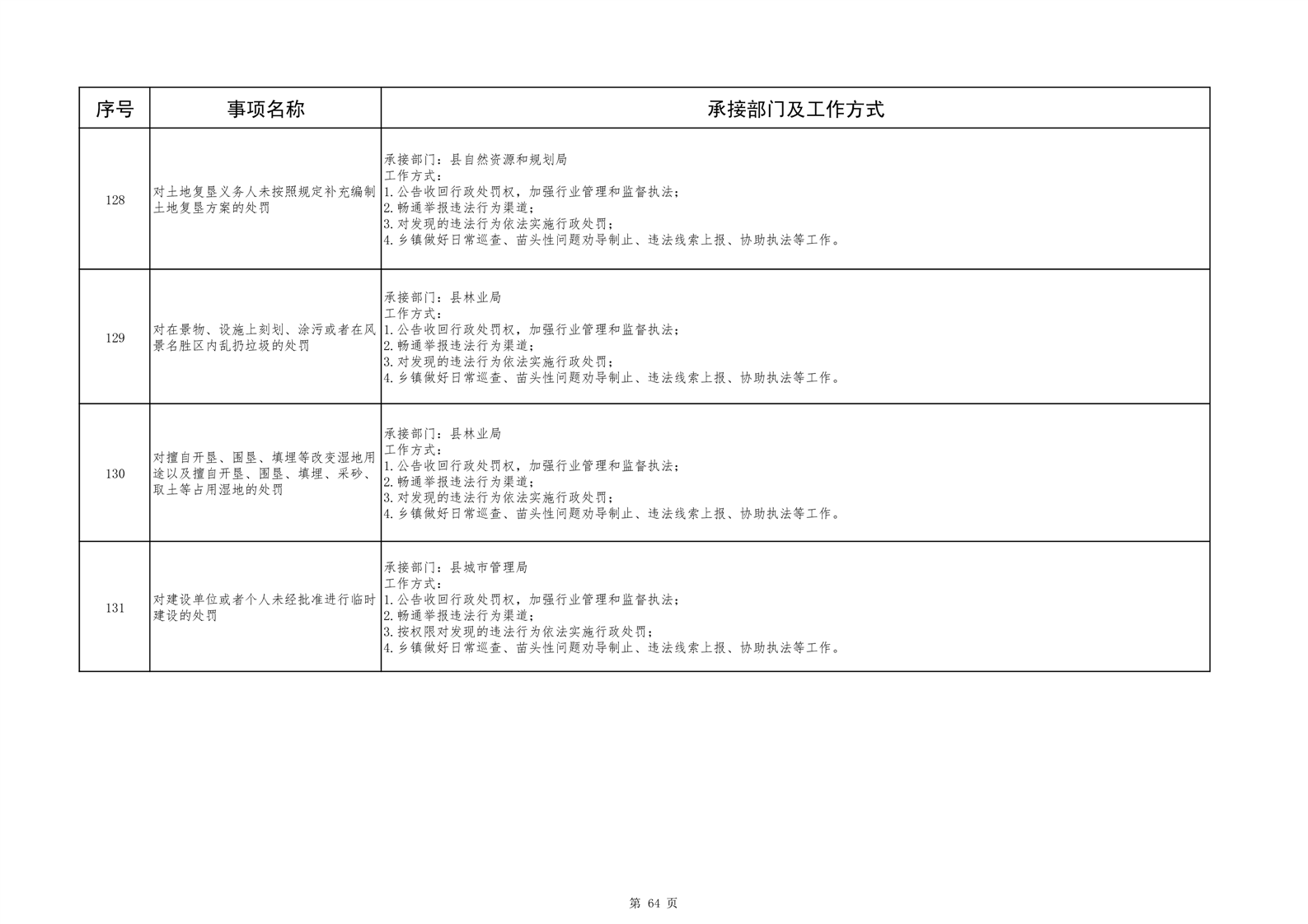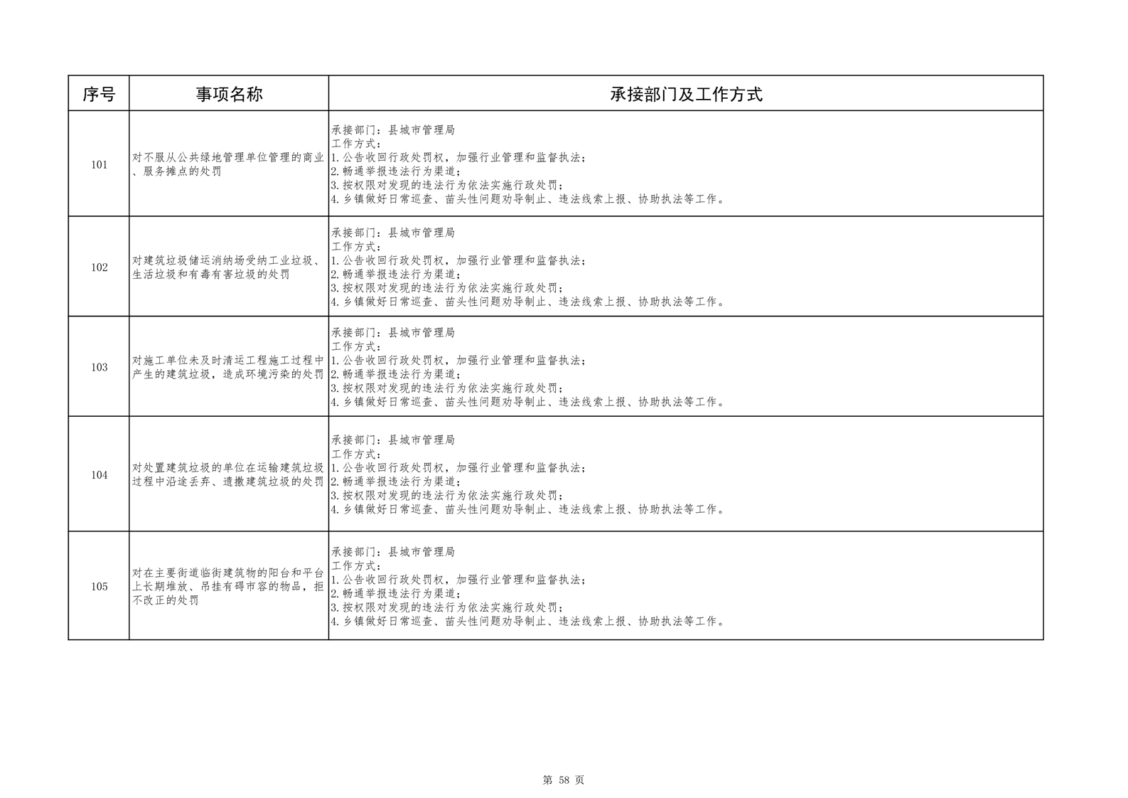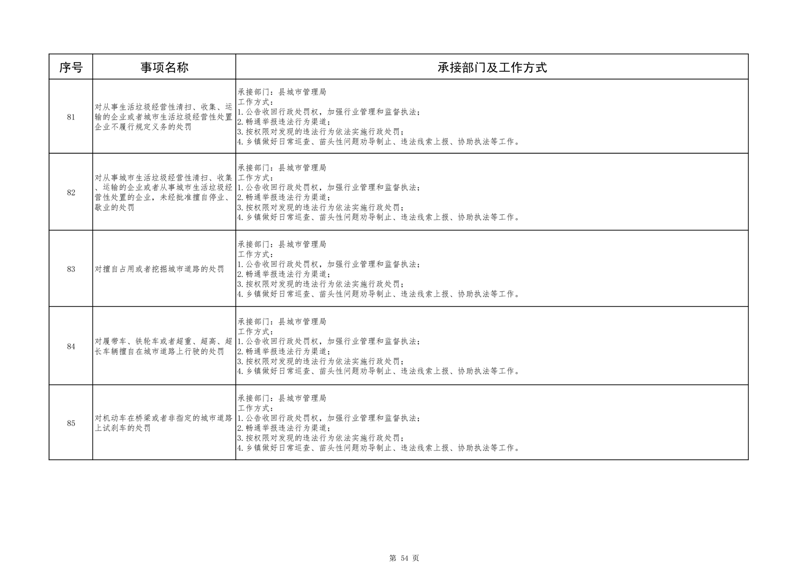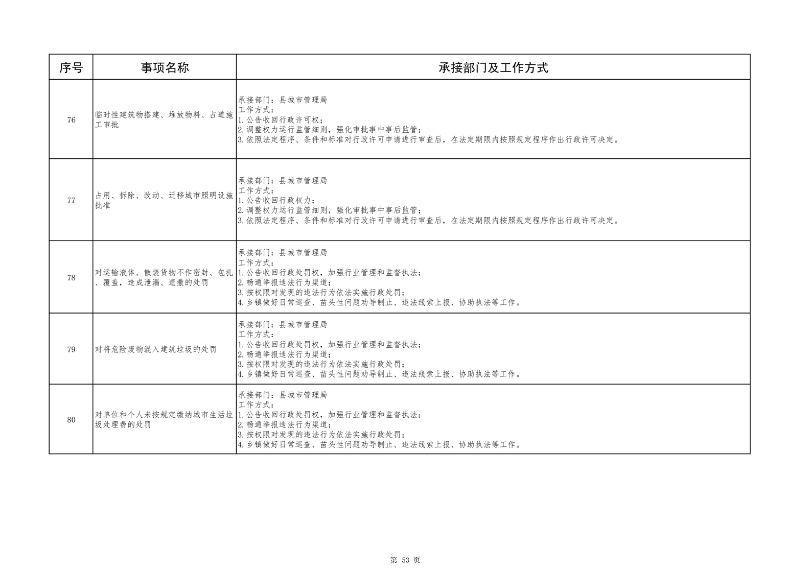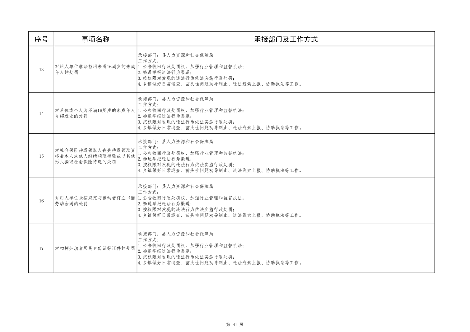 六安市舒城县城关镇履职事项清单