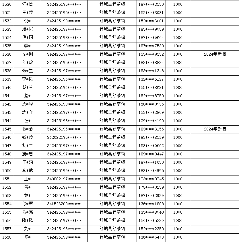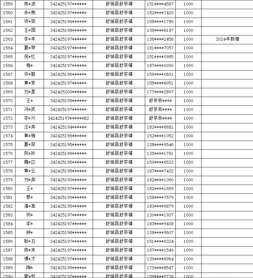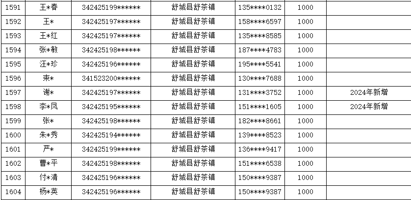 舒茶镇2024年贫困精神残疾人药费补助花名册