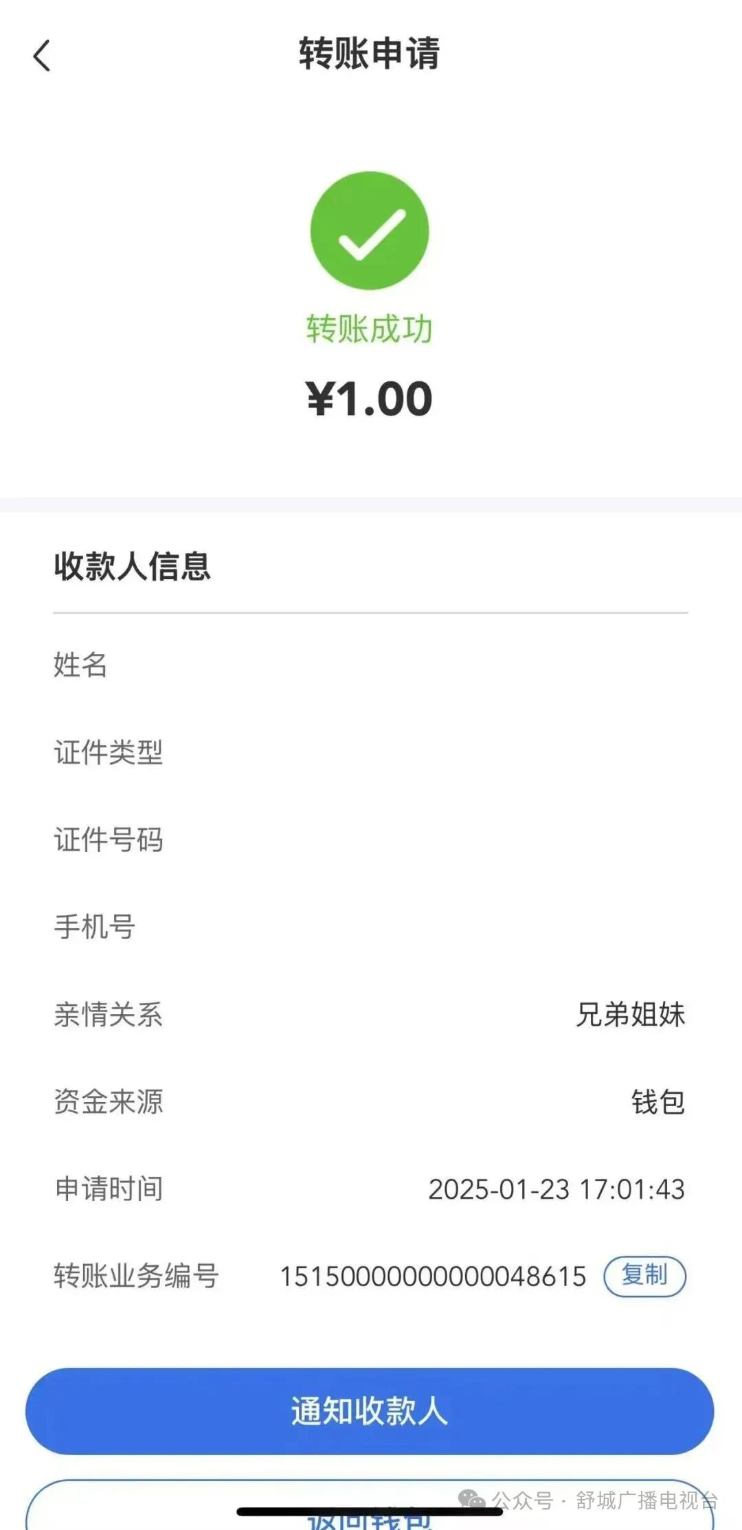 ■医保钱包转账时,若被转账医保钱包账户未开立,则如下图所示: