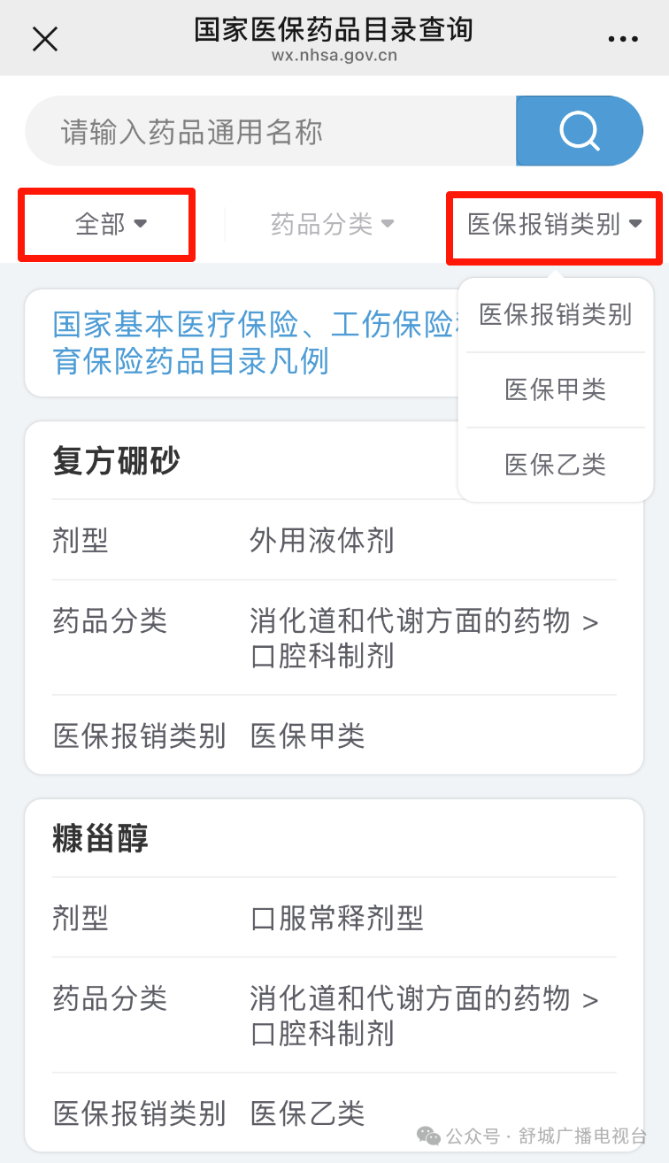 也可以根据自己的需求,选择“医保报销类别”等进行筛选。