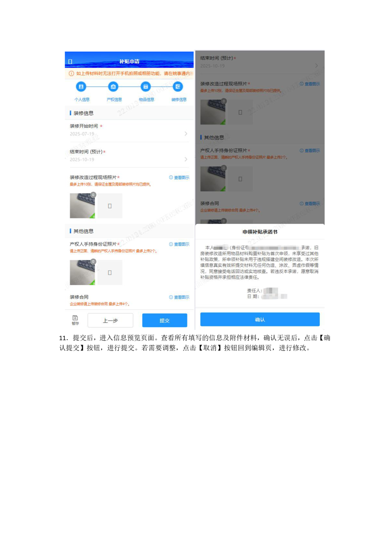 (三)实地核验。县区住建房管部门对申请资料进行审核,并根据工作需要,可协调组织属地街道办事处人员对申请人提交的装修改造情况、物品材料购置情况进行实地核验。
