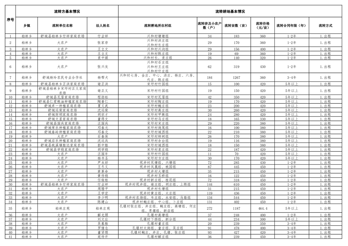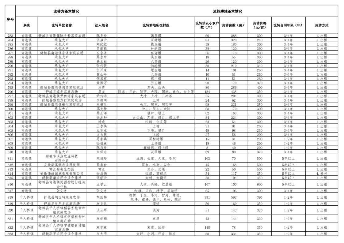 舒城县南港镇2025年四季度农村土地承包经营权流转情况表