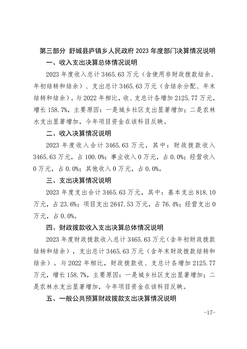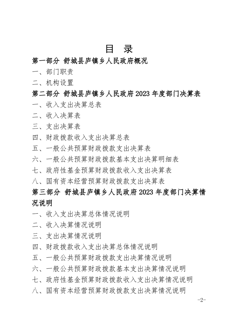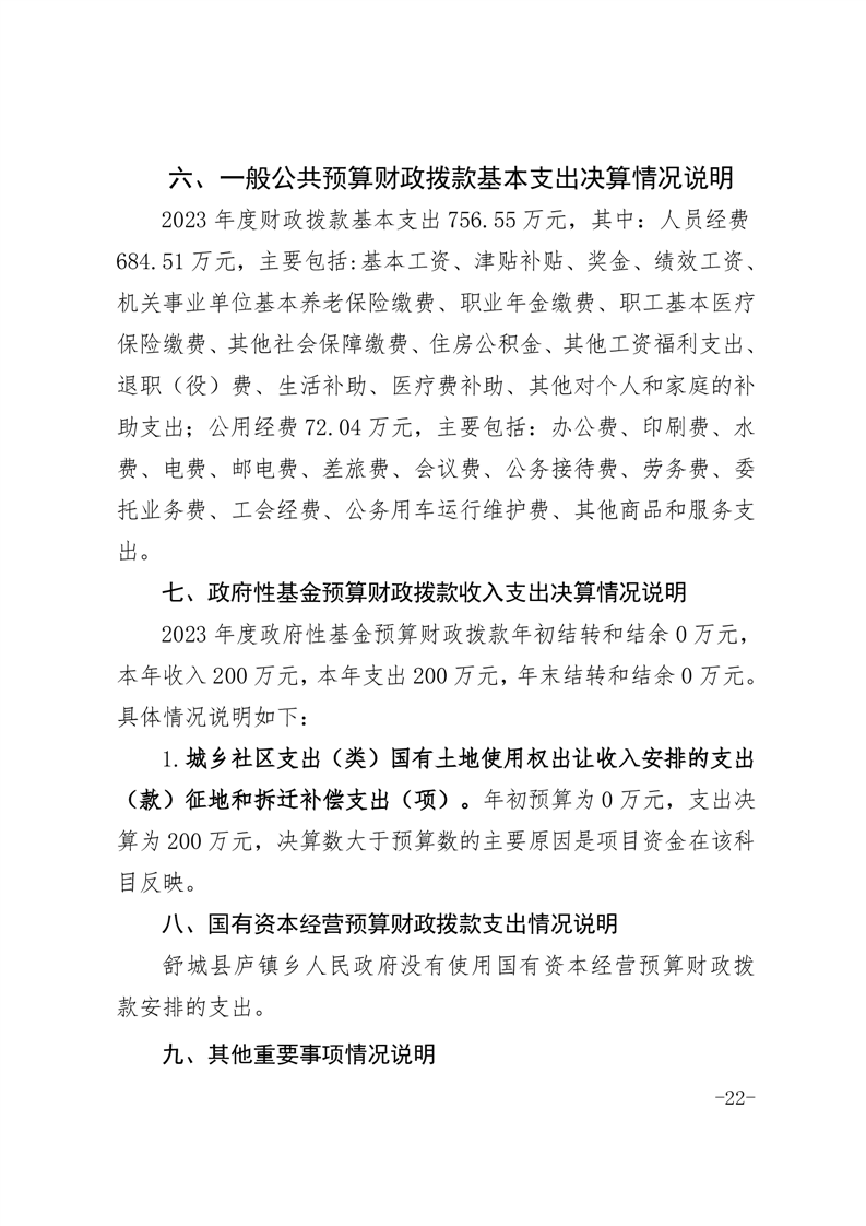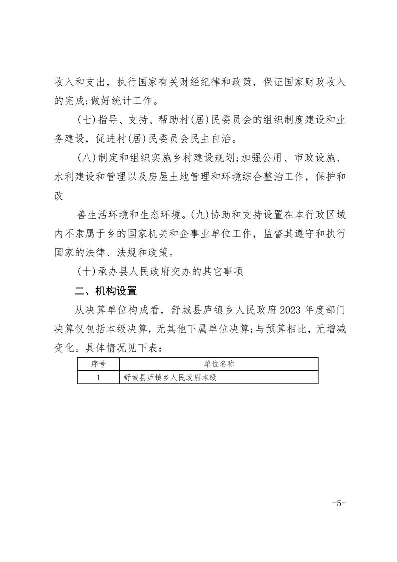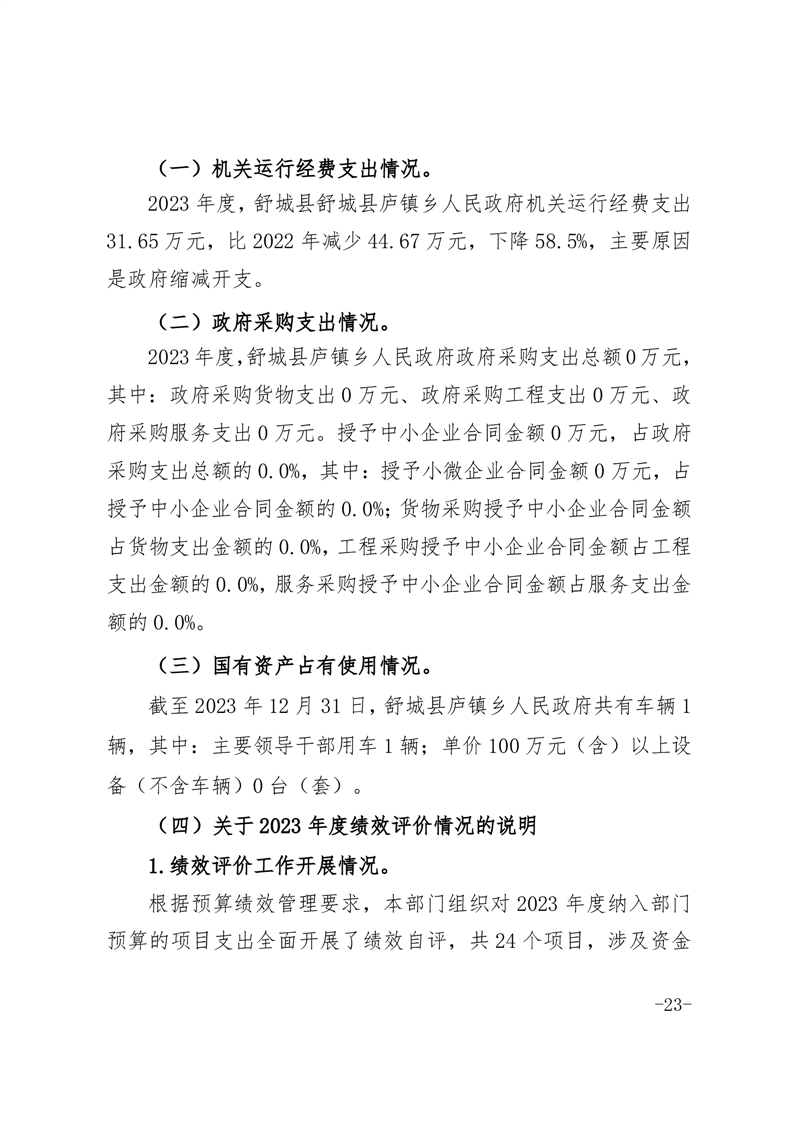 舒城县庐镇乡人民政府2023年度部门决算