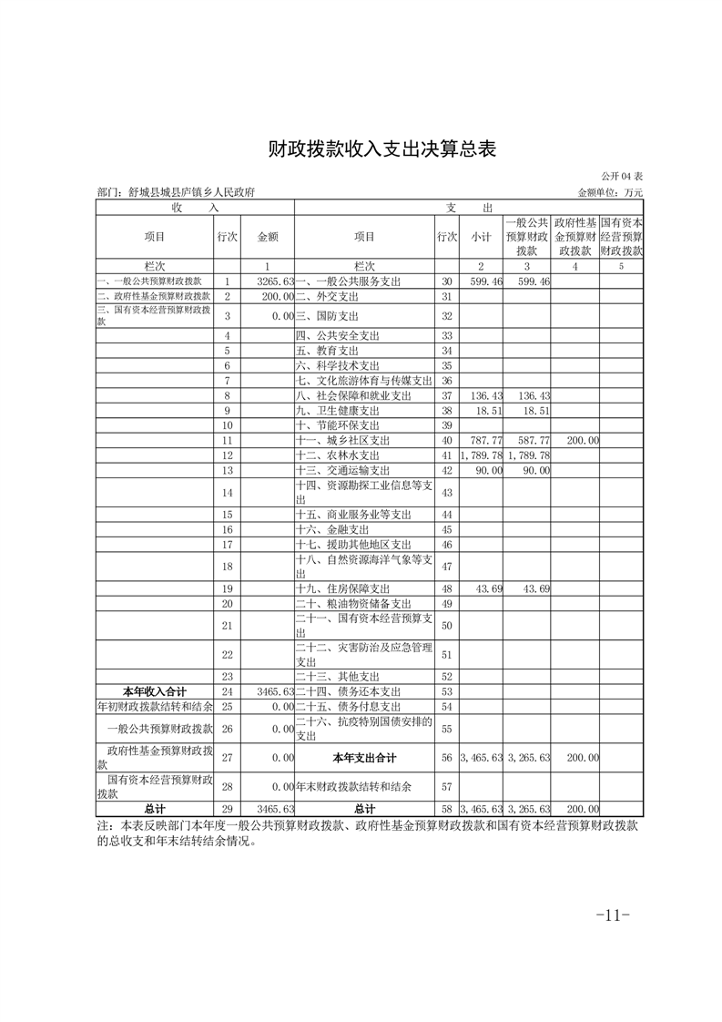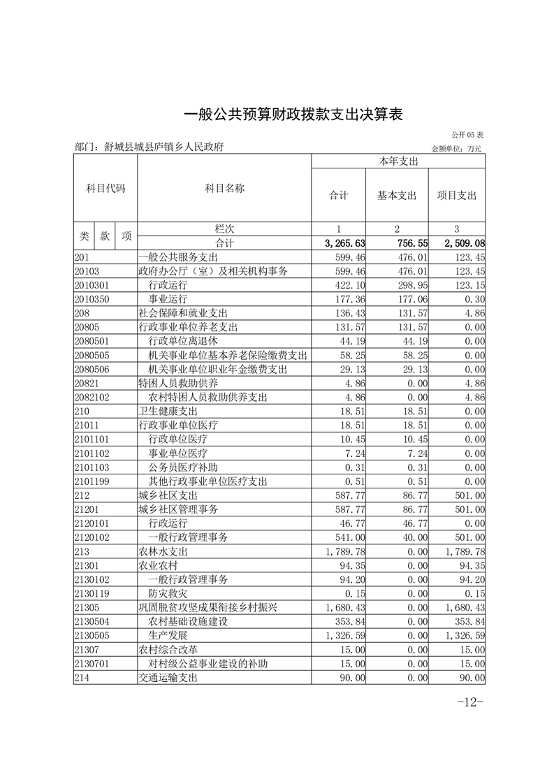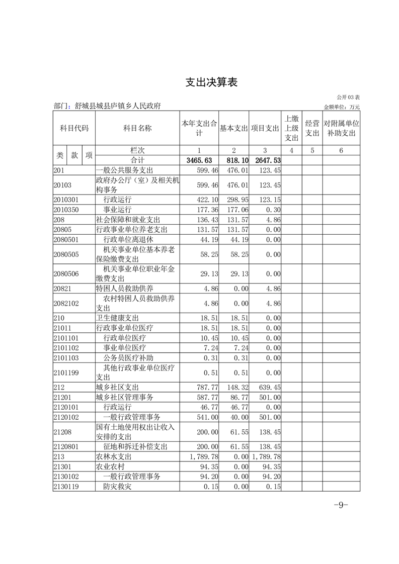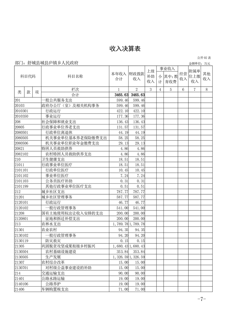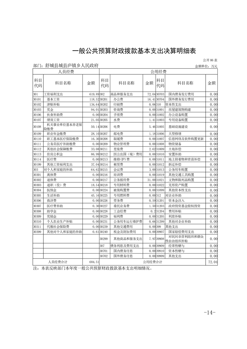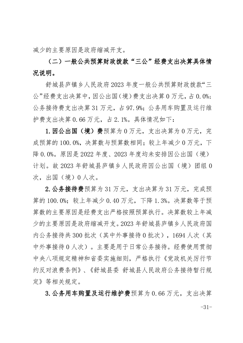 舒城县庐镇乡人民政府2023年度部门决算