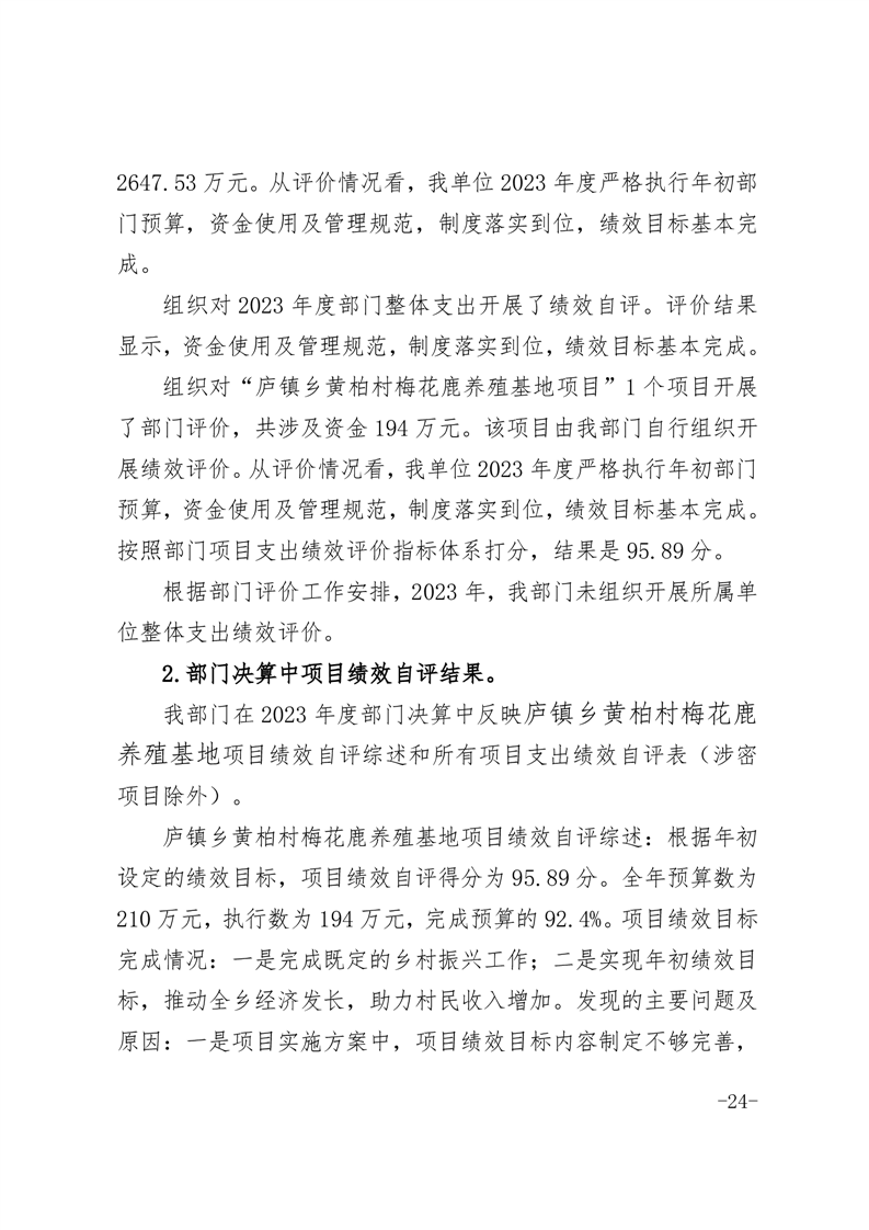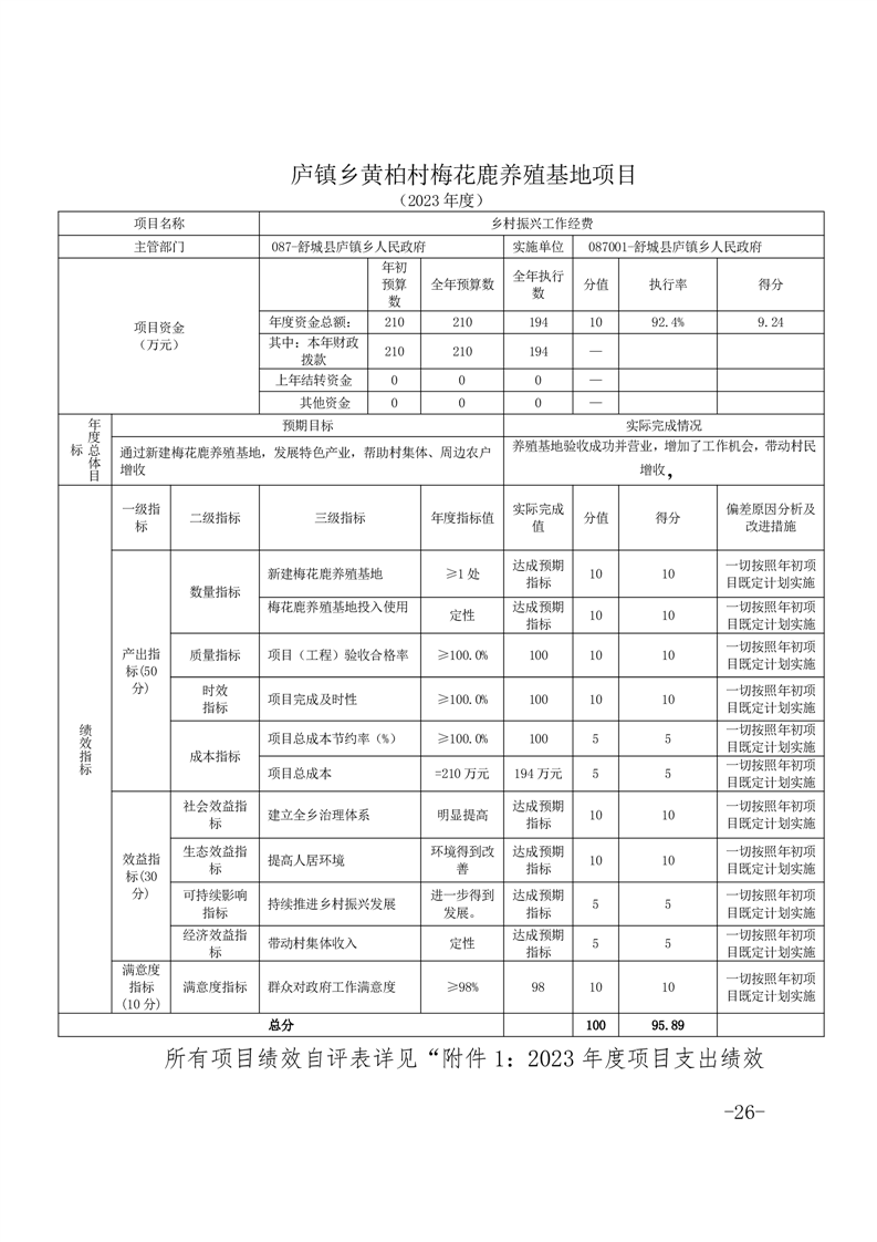 附件2:2023年度庐镇乡梅花鹿养殖基地项目绩效评价报告.pdf