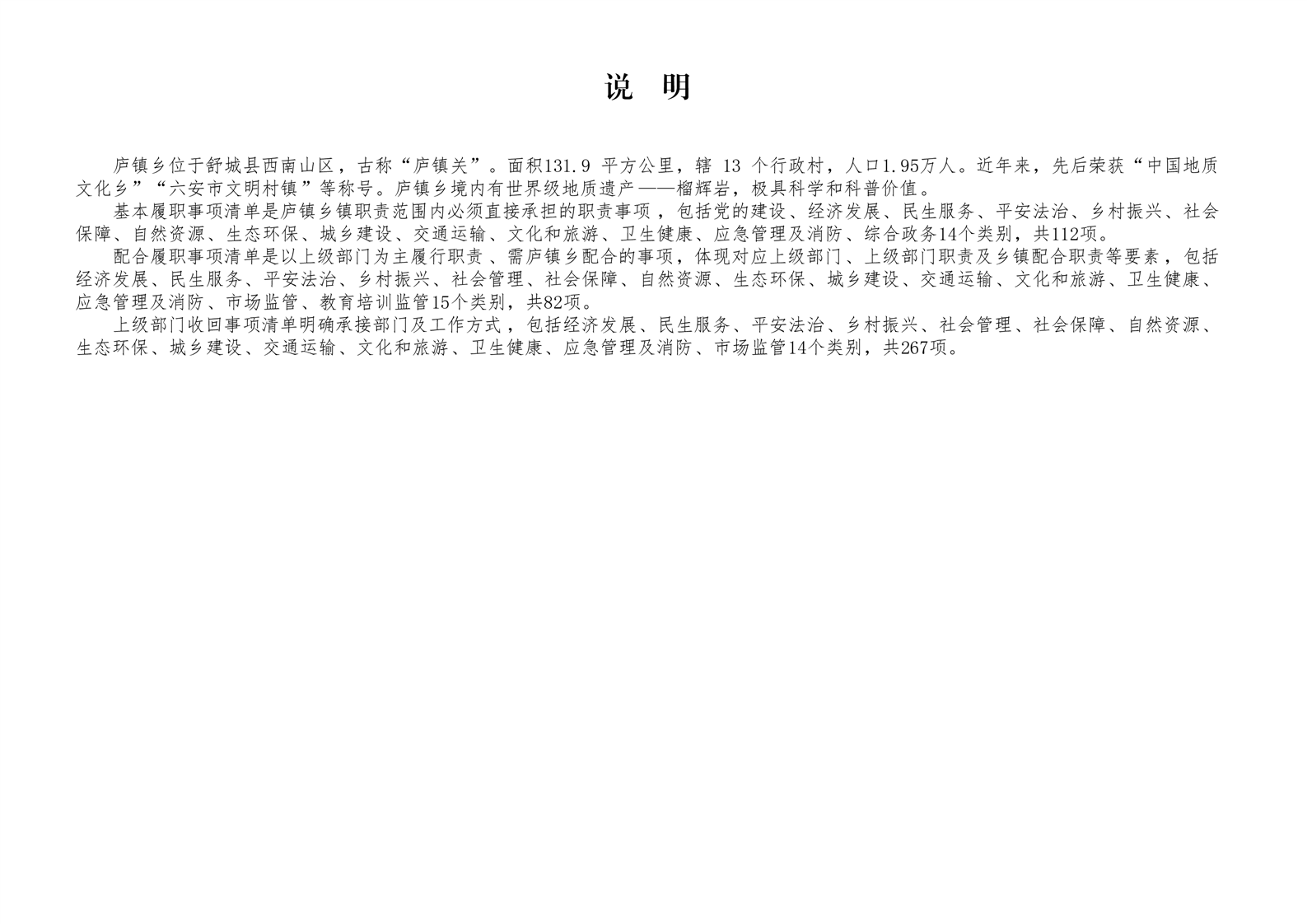 安徽省六安市舒城县庐镇乡履行职责事项清单