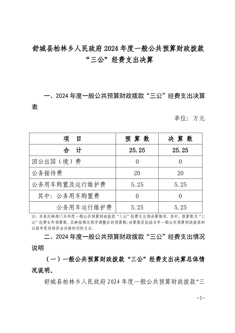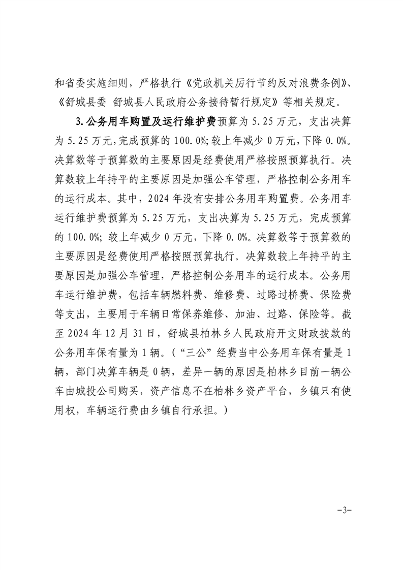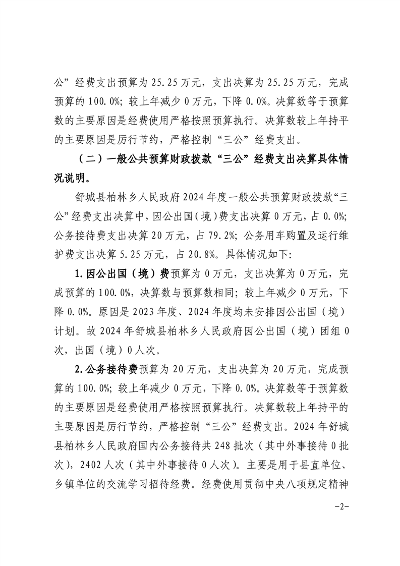 舒城县柏林乡人民政府2024年一般公共预算安排“三公”经费情况