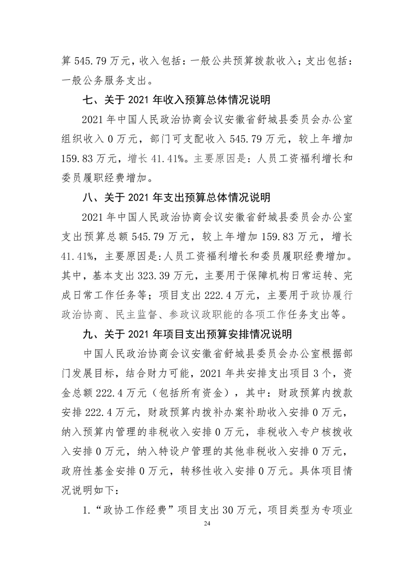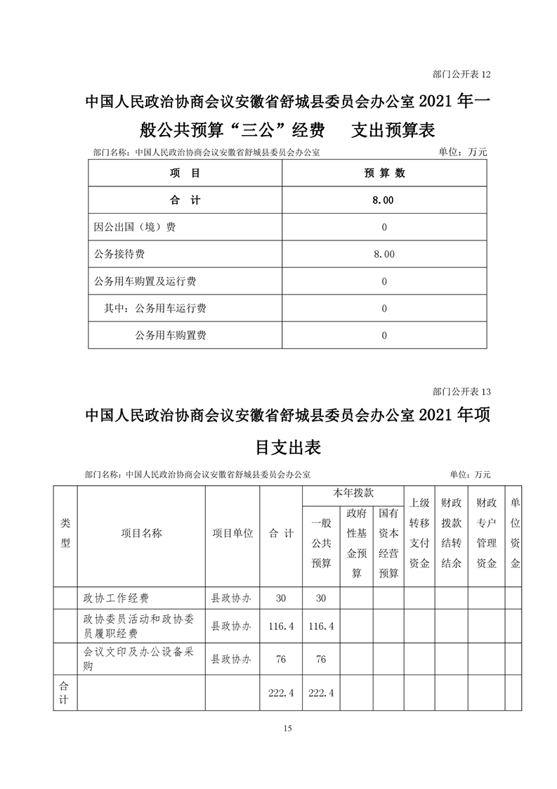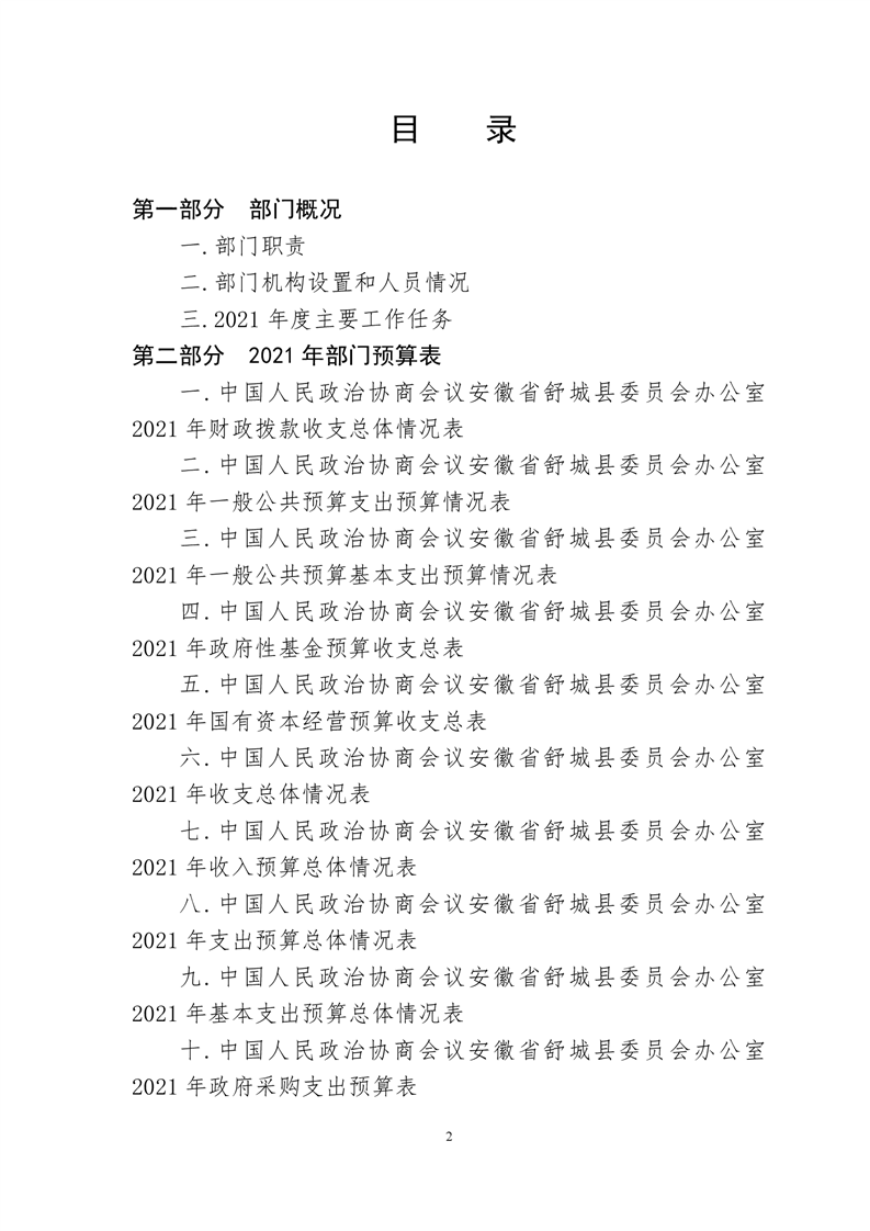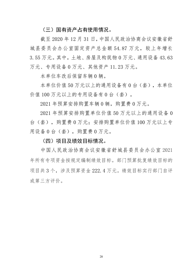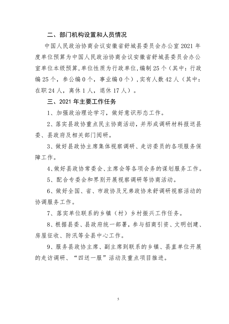 中国人民政治协商会议安徽省舒城县委员会办公室2021年部门预算公开