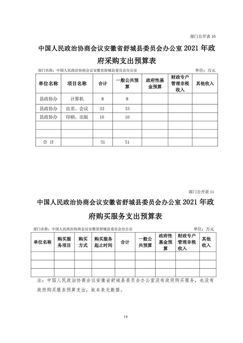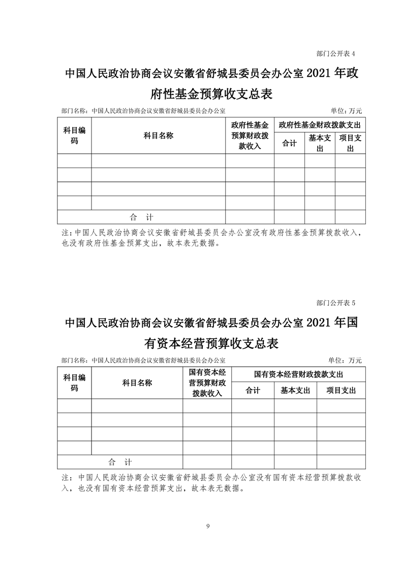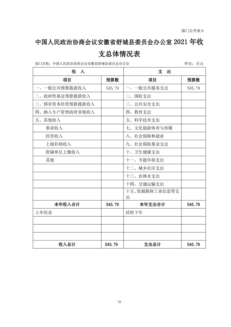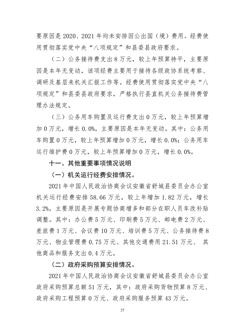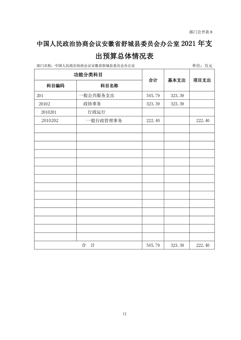 中国人民政治协商会议安徽省舒城县委员会办公室2021年部门预算公开
