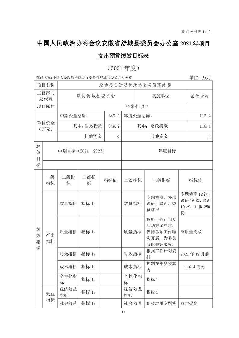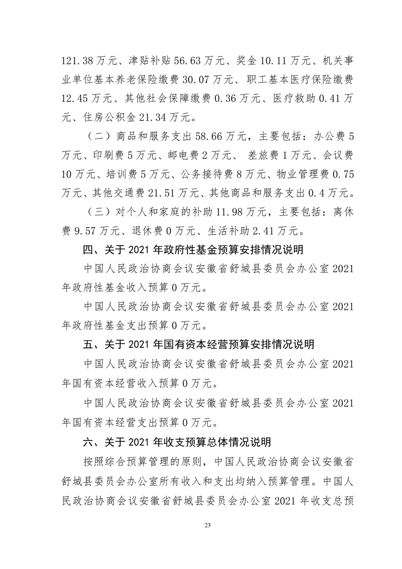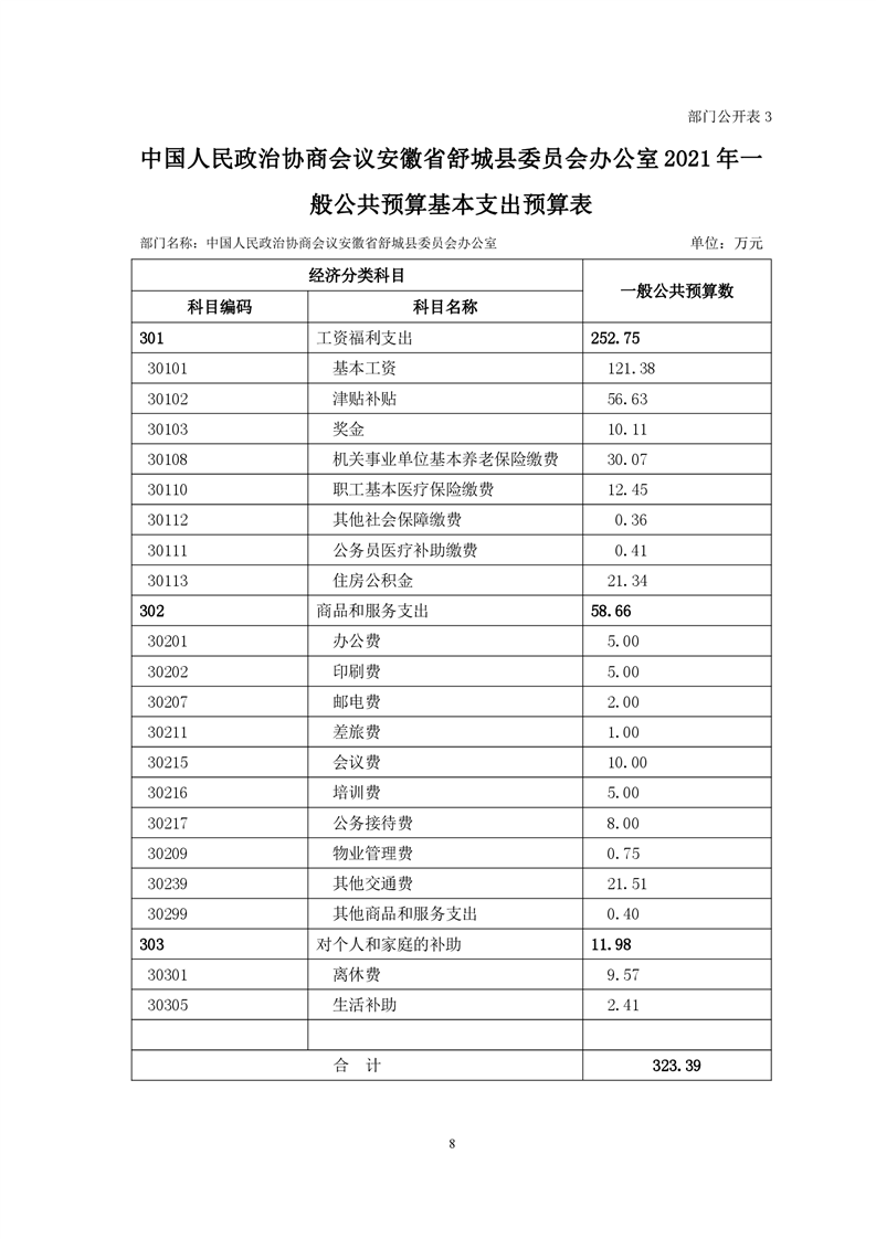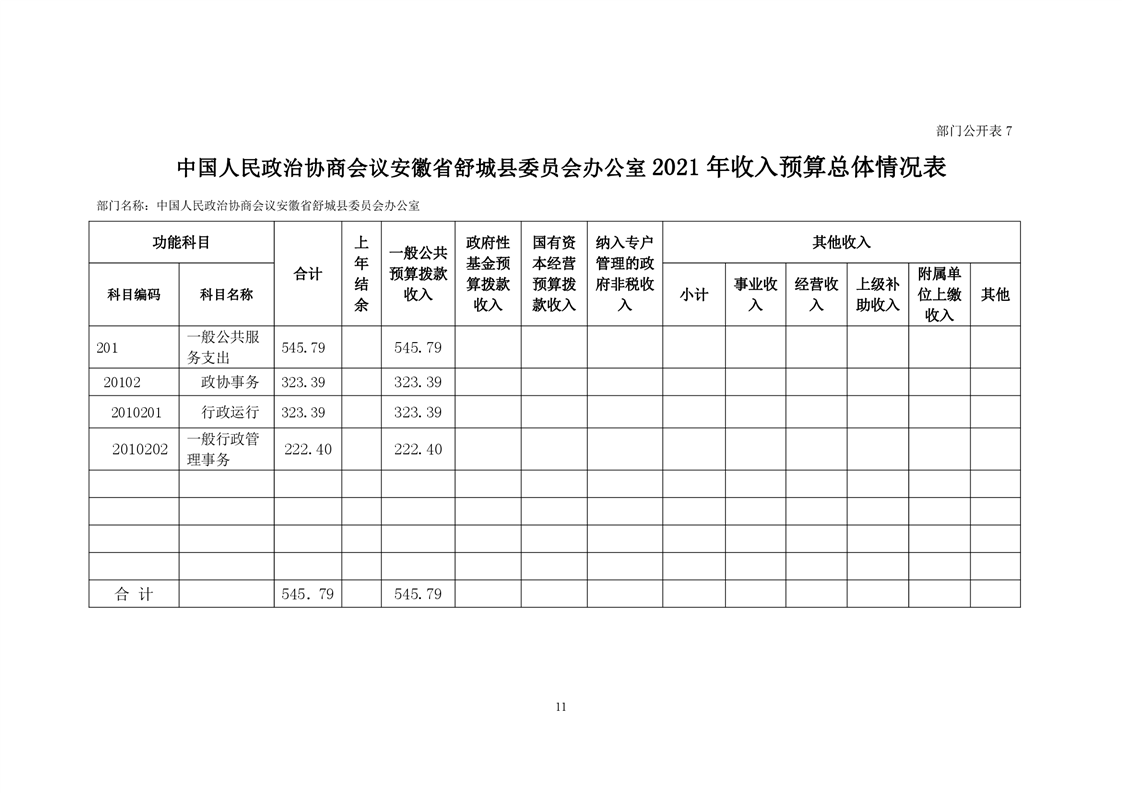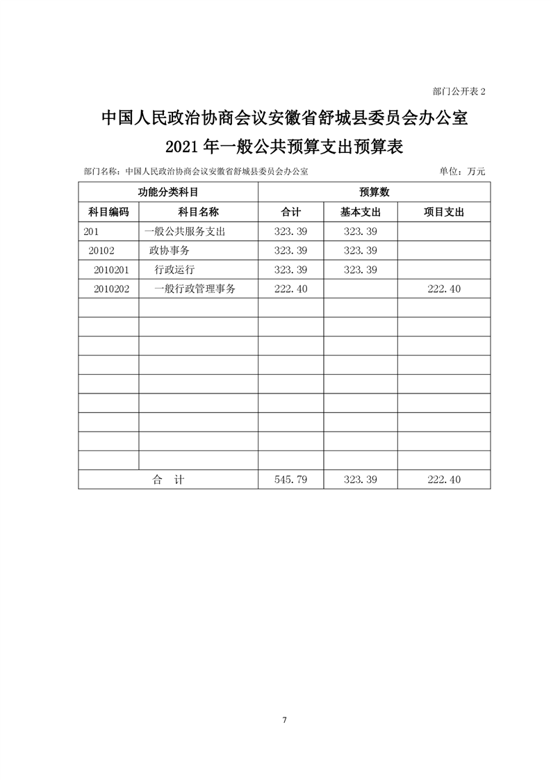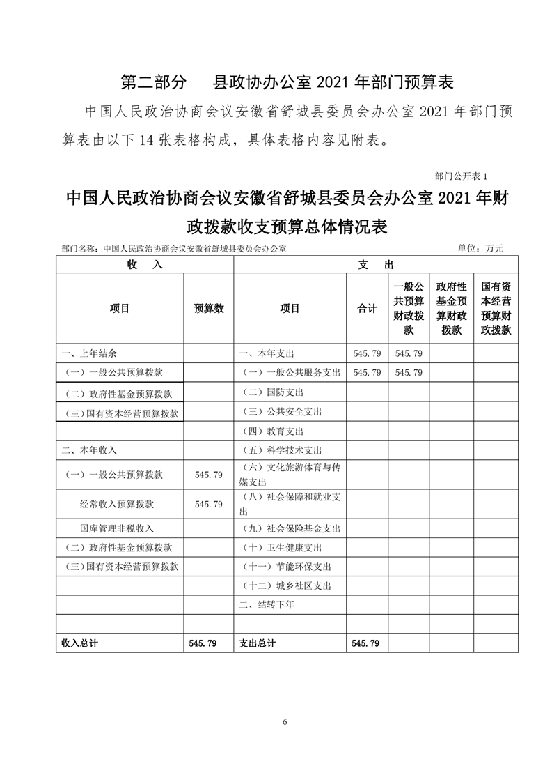 中国人民政治协商会议安徽省舒城县委员会办公室2021年部门预算公开