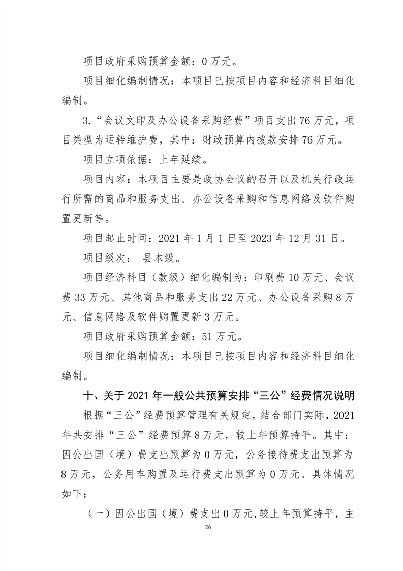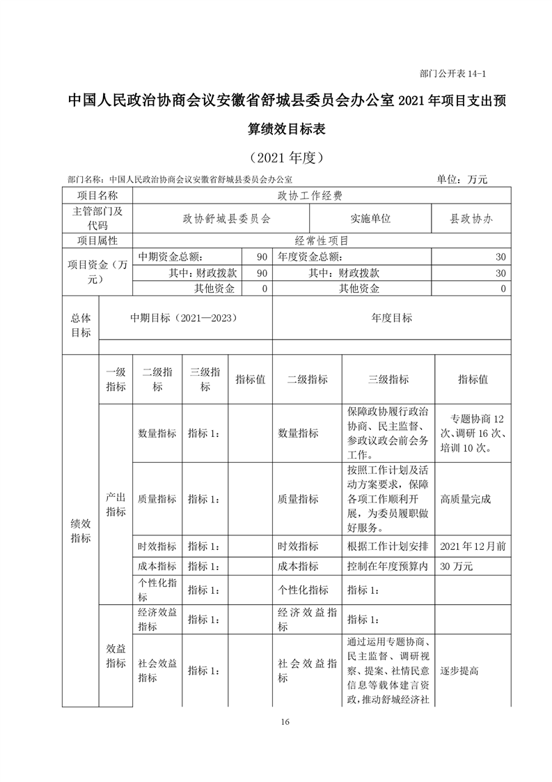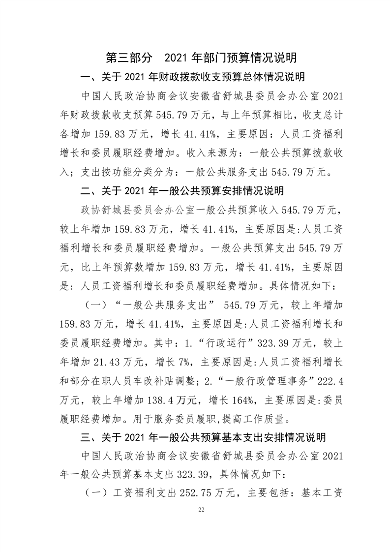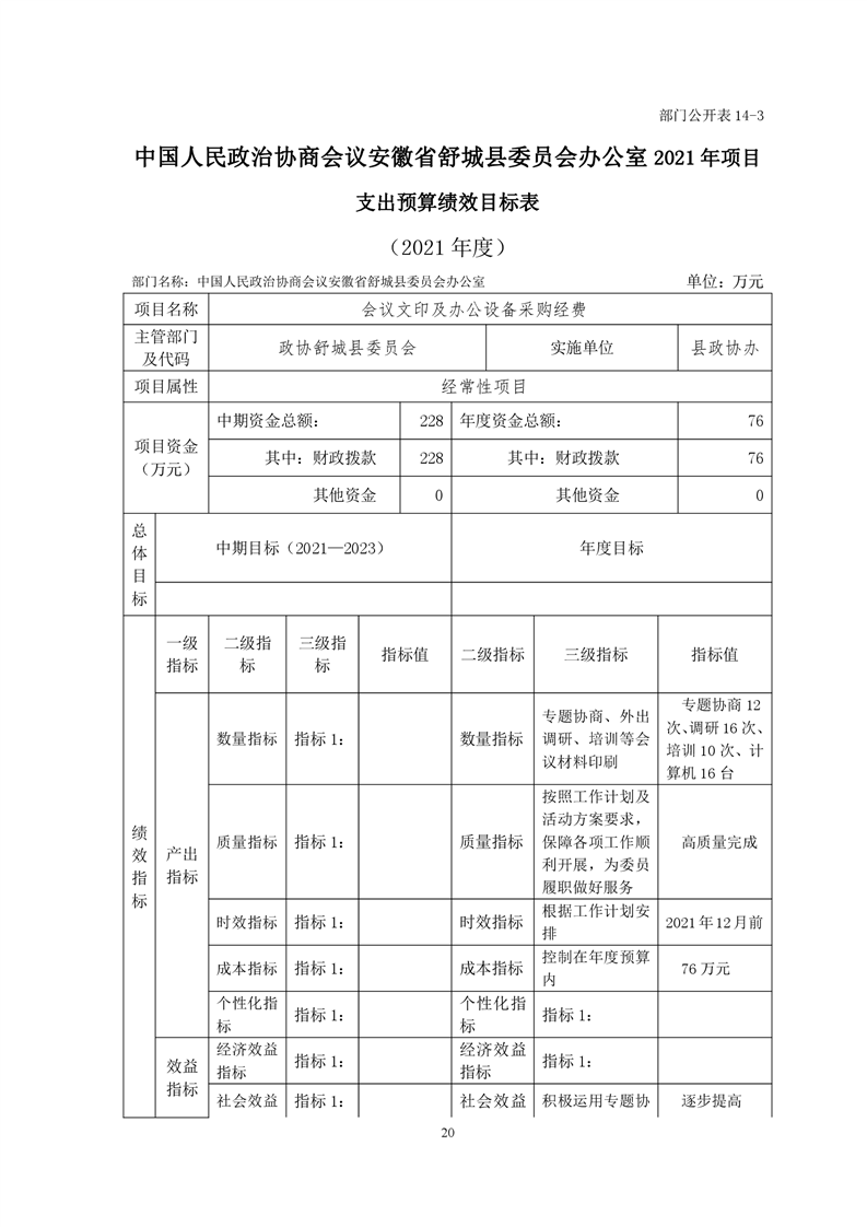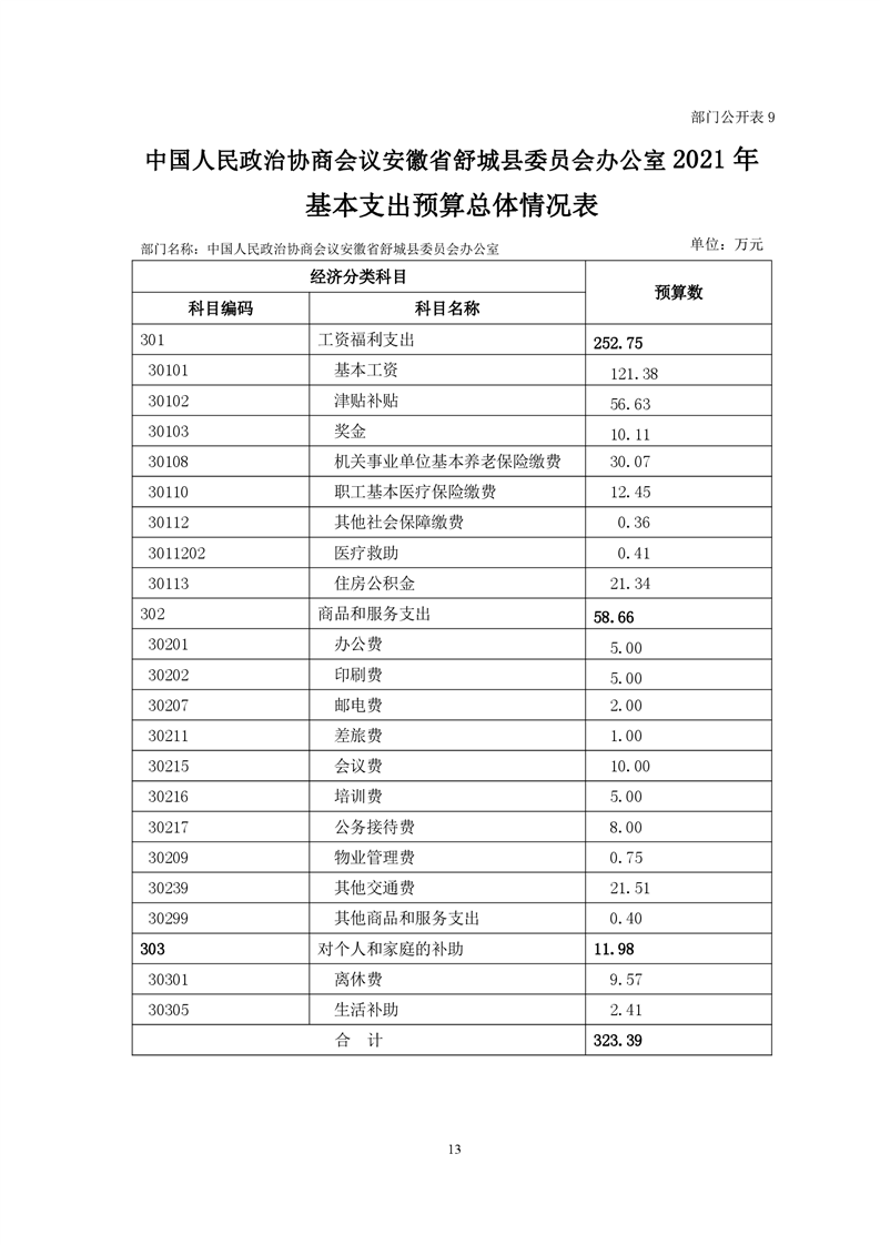 中国人民政治协商会议安徽省舒城县委员会办公室2021年部门预算公开