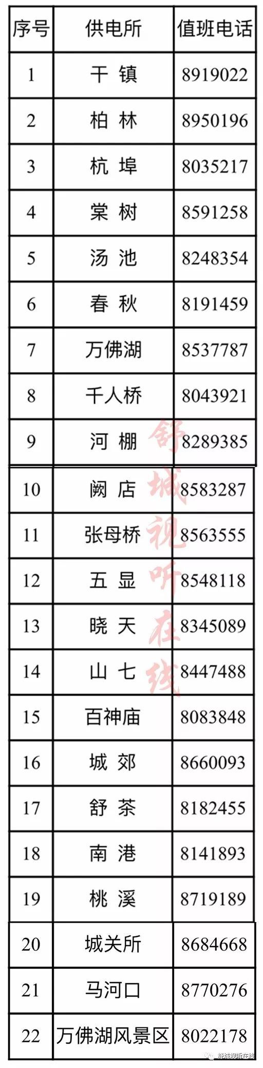 舒城县供电服务电话(包含城关镇)