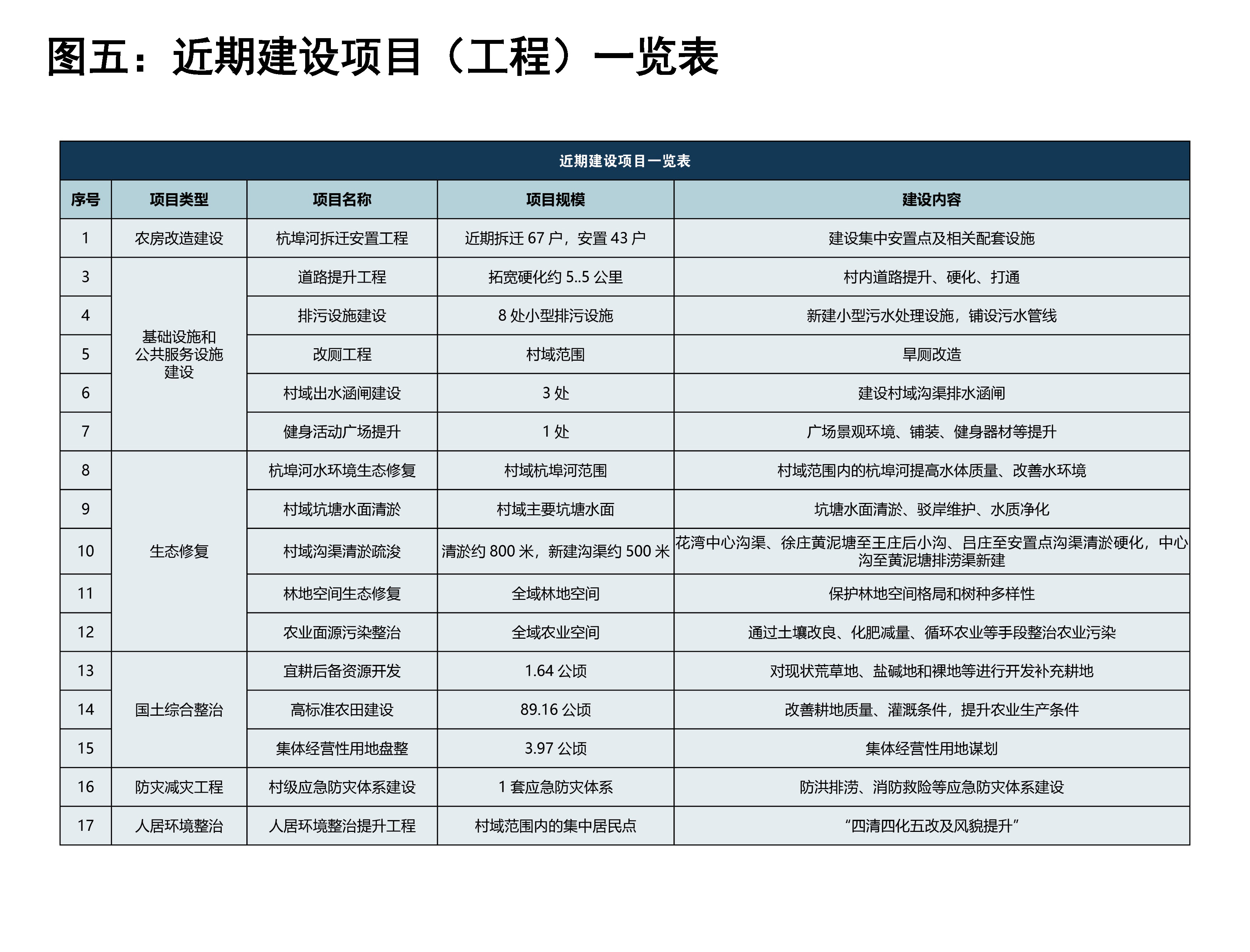 根据《安徽省村庄规划编制指南(2022年版)》要求,公示成果包括“二图一表一则”,即村域国土空间规划图、重点区域总平面图、近期建设项目(工程)表和村庄规划用途管制规则。详见附件。