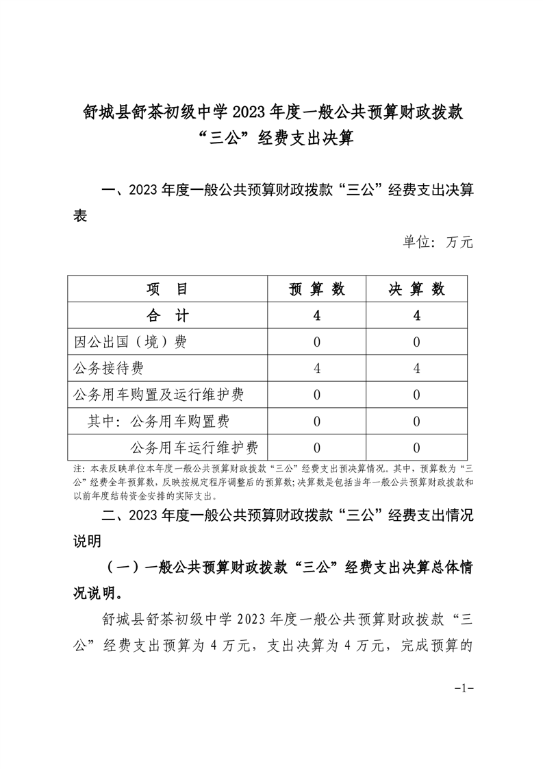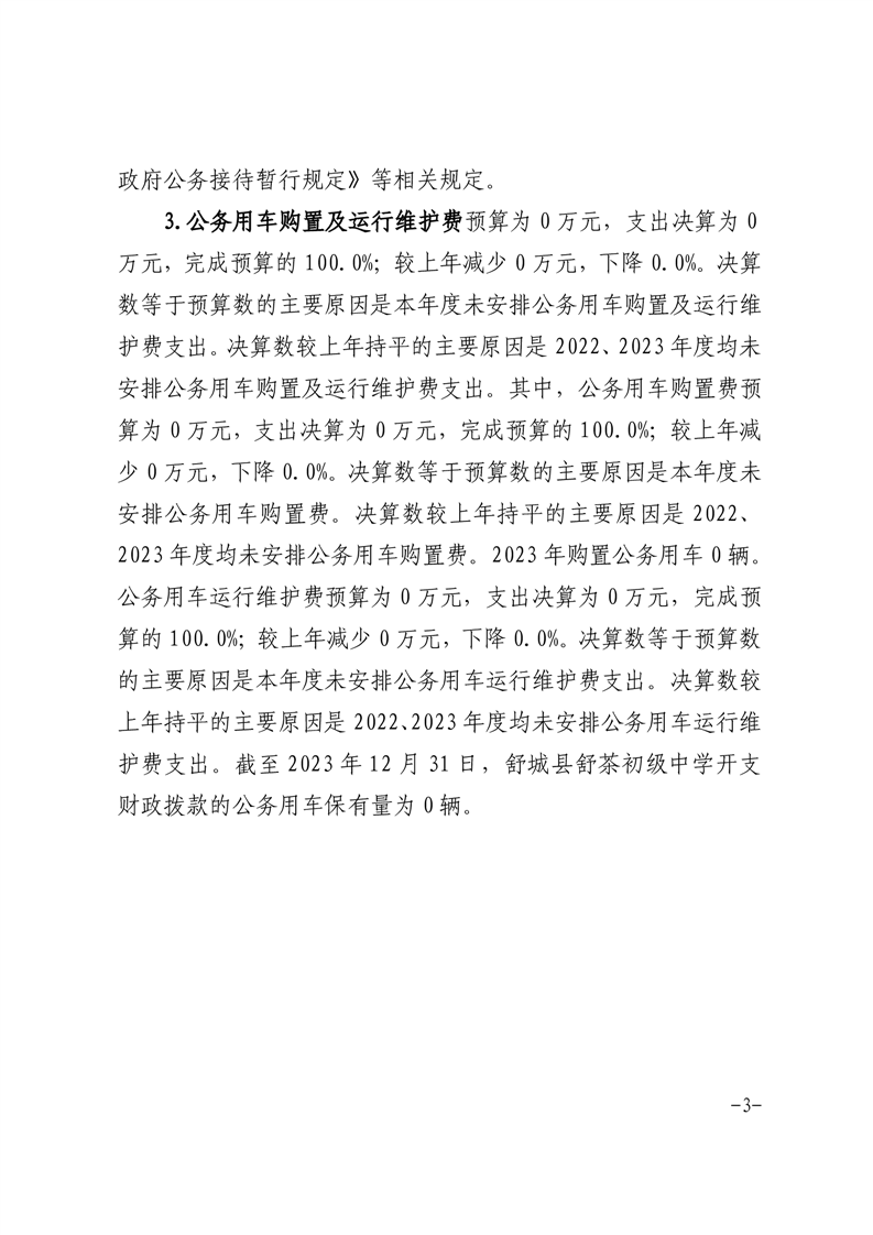 舒城县舒茶初级中学2023年度一般公共预算财政拨款“三公”经费支出决算 |