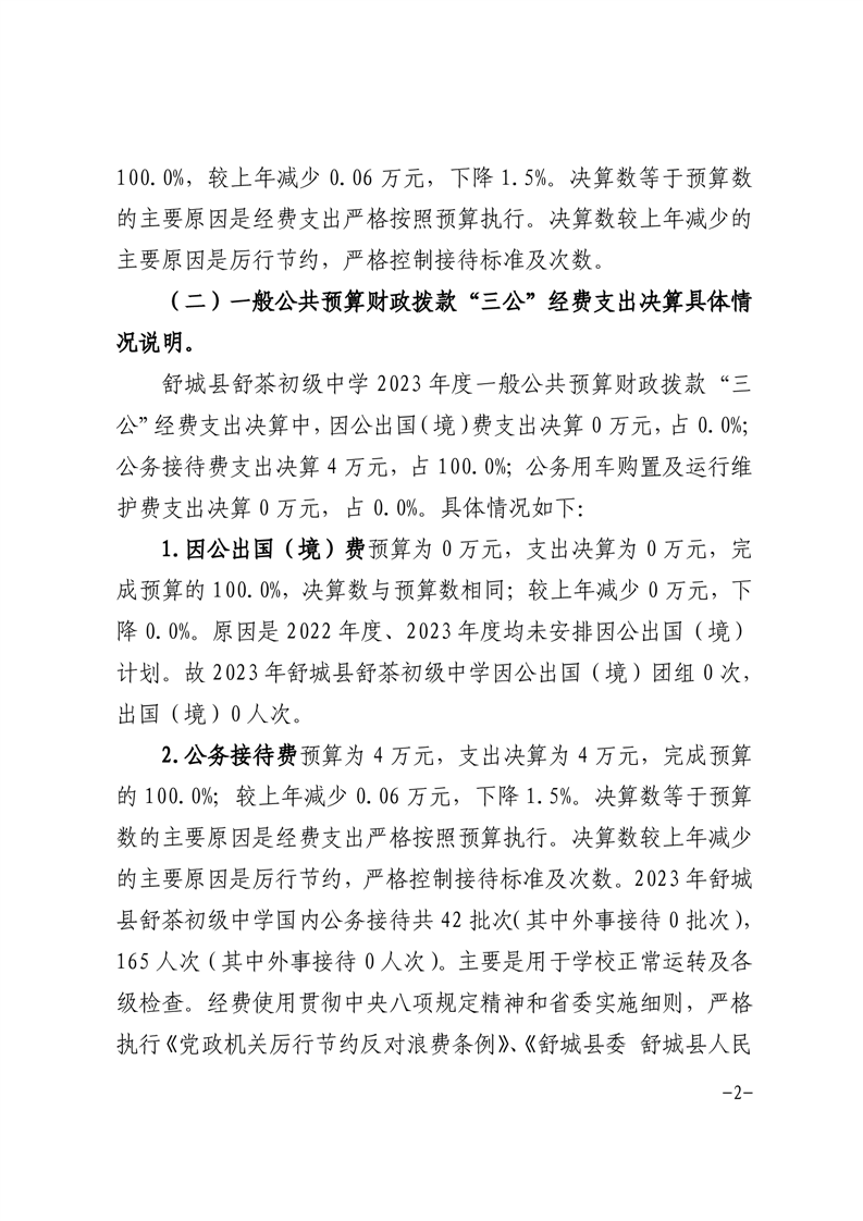 舒城县舒茶初级中学2023年度一般公共预算财政拨款“三公”经费支出决算