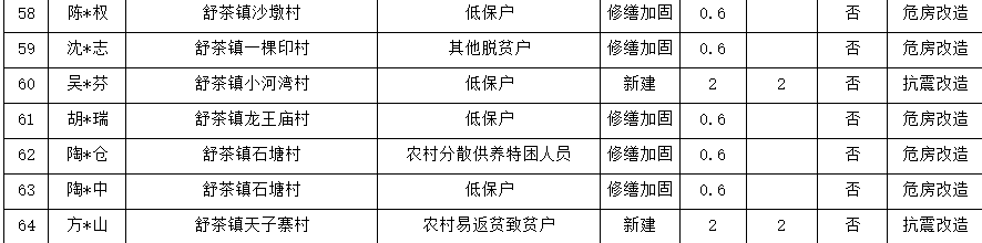 舒城县舒茶镇2025年度农村危房改造农户名单 |