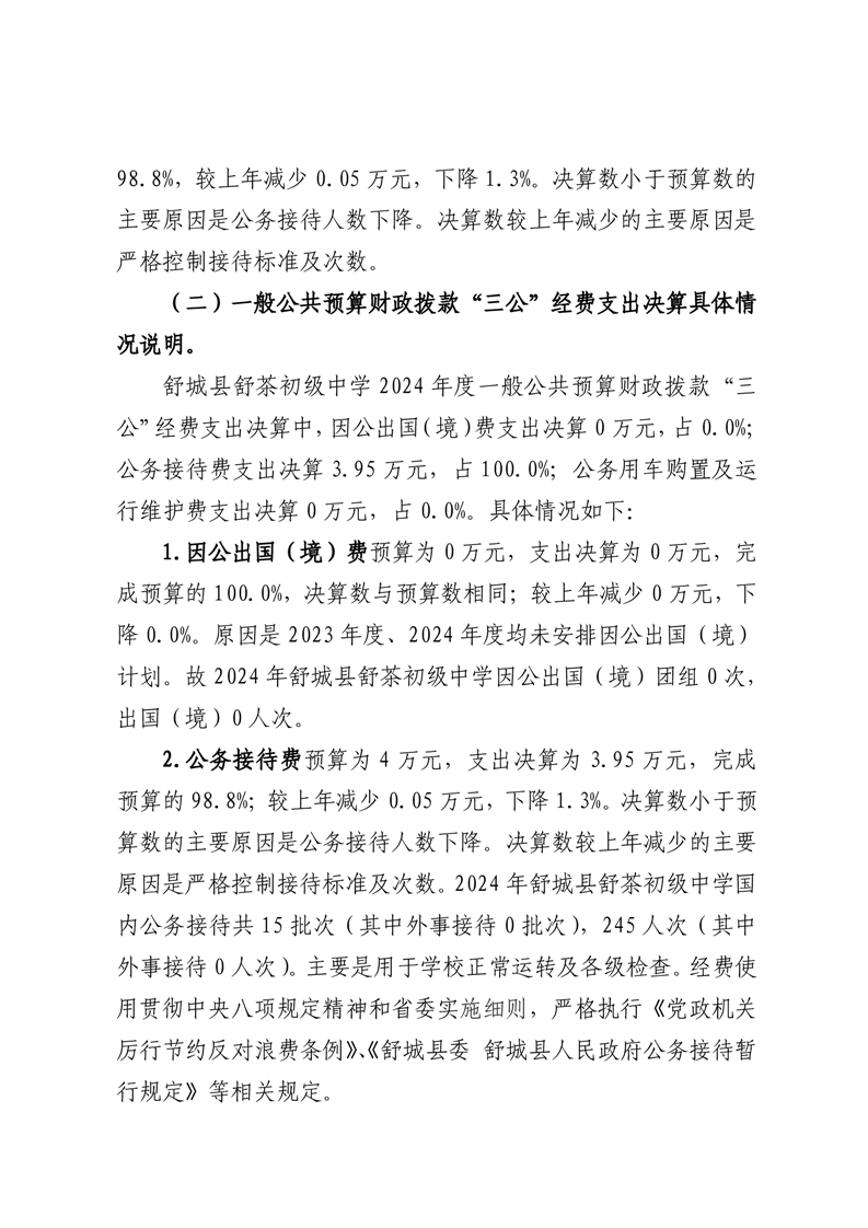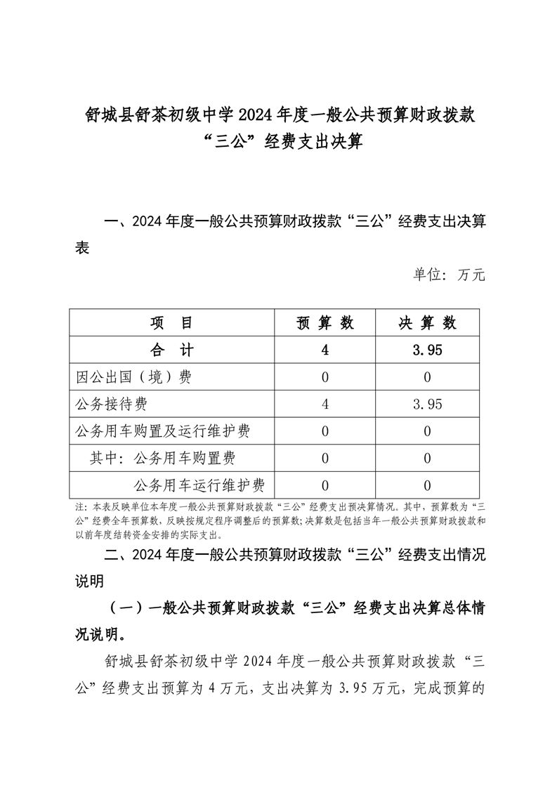舒城县舒茶初级中学2024年度一般公共预算财政拨款“三公”经费支出决算公开 |