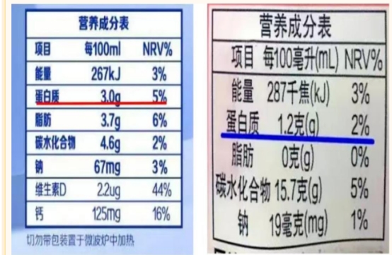 三看营养成分表,消费者可以通过营养成分表中蛋白质含量了解产品属性,如液体乳(包括酸奶)蛋白质含量至少≥2.3g/100g,而含乳饮料蛋白质含量仅要求≥1.0g/100g或≥0.7g/100g。