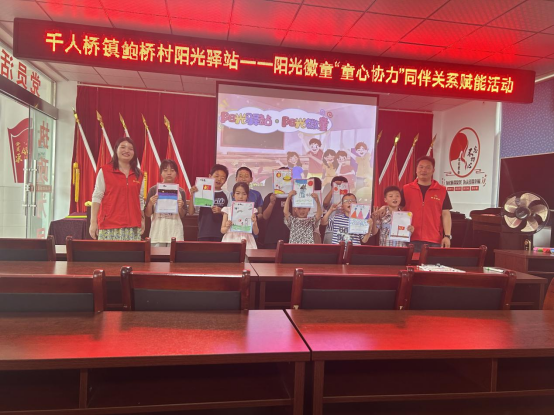 为了培养留守儿童处理和谐的社会同伴关系,在游戏互动中让孩子们发现自己的潜力,通过自我发现与他人反馈,引导孩子们体验合作的意义和乐趣,进一步认识自己,悦纳自己,6月2日下午,千人桥镇鲍桥村阳光驿站开展阳光徽童“童心协力共成长”同伴关系赋能活动。