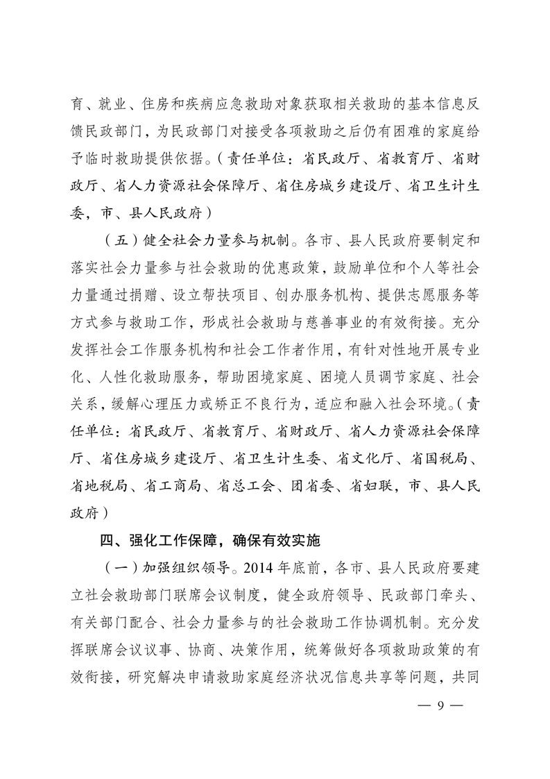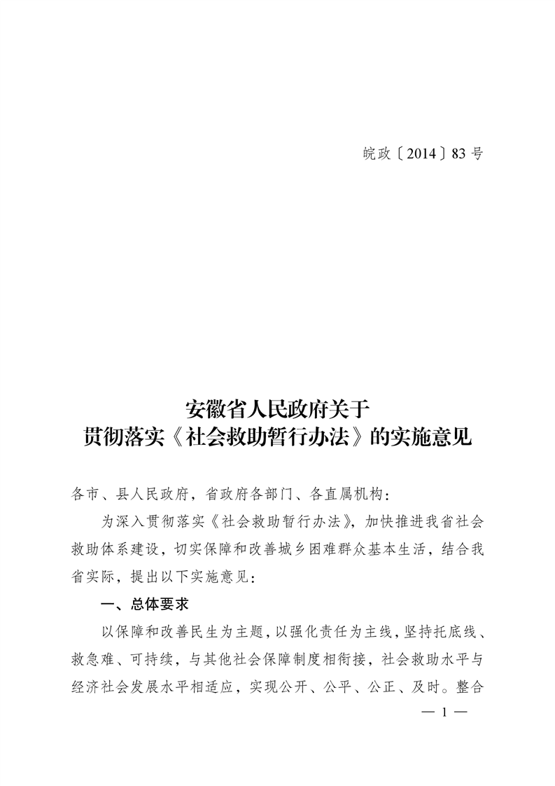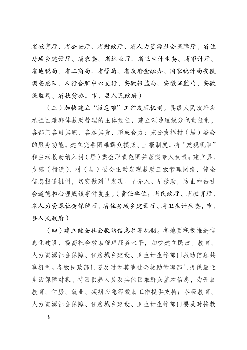 安徽省人民政府关于贯彻落实《社会救助暂行办法》的实施意见 |