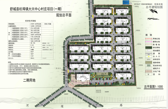 5、舒城县杭埠镇大兴中心村庄项目(一期)位于舒城县杭埠镇大兴村境内(具体位置见附图),规划总用地面积为27297.03(约合40.95亩),总建筑面积14498.14㎡,批准日期:2024年3月29日。