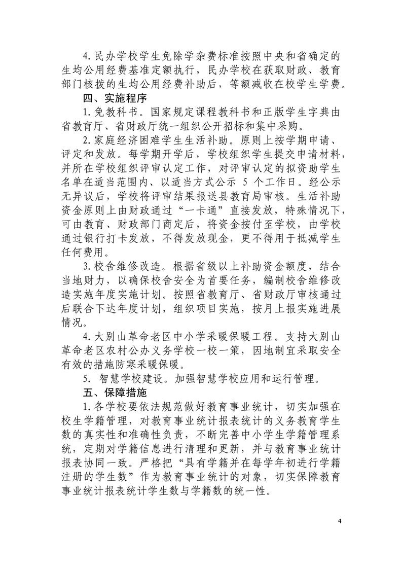 关于印发《舒城县2020年义务教育经费保障实施方案》的通知(统一城乡义务教育“两免一补”政策)