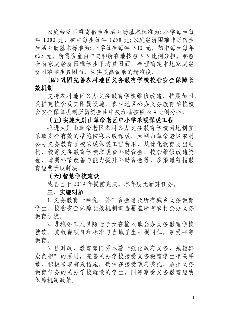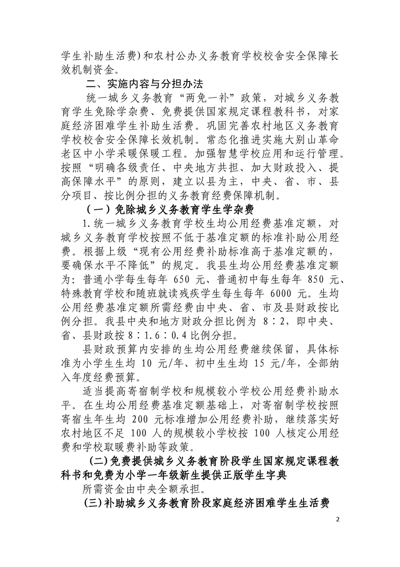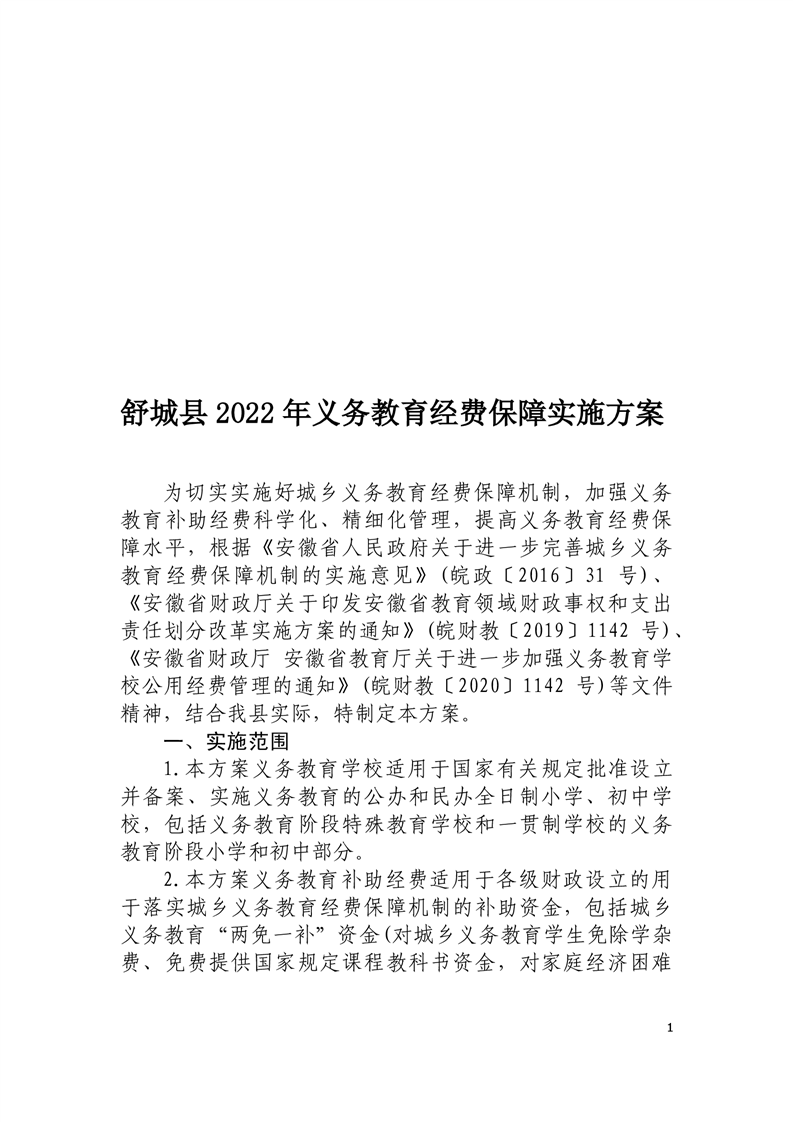 关于印发《舒城县2020年义务教育经费保障实施方案》的通知(统一城乡义务教育“两免一补”政策) |