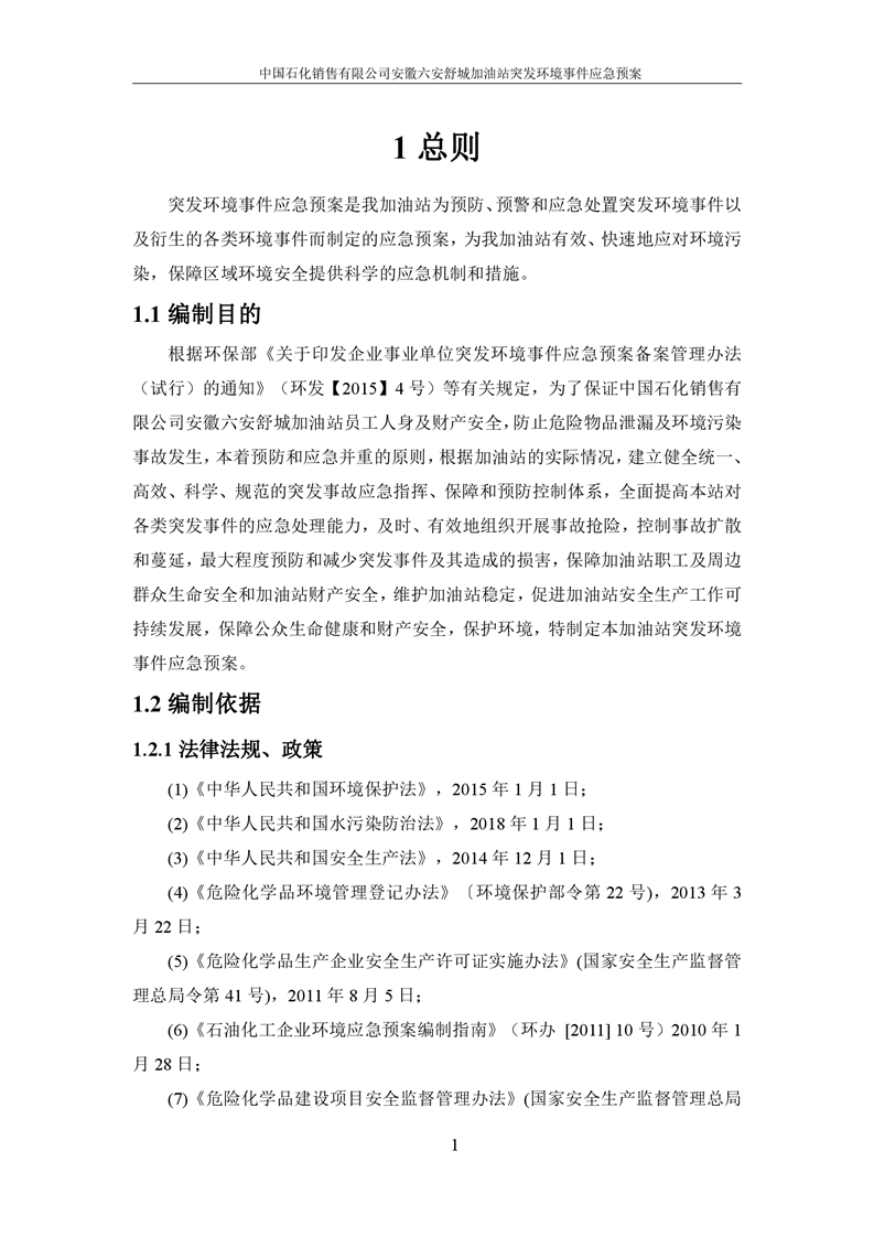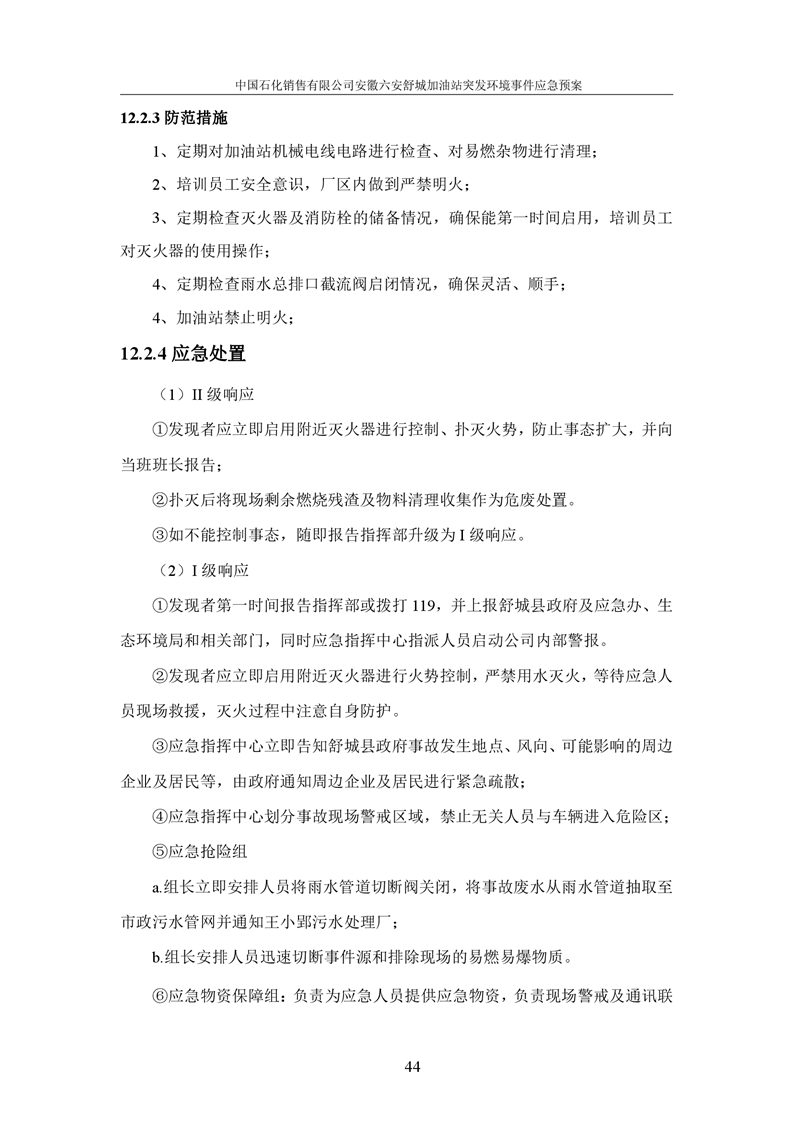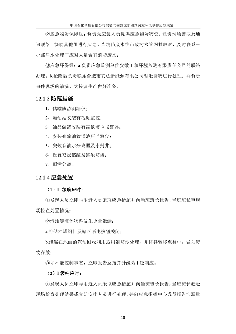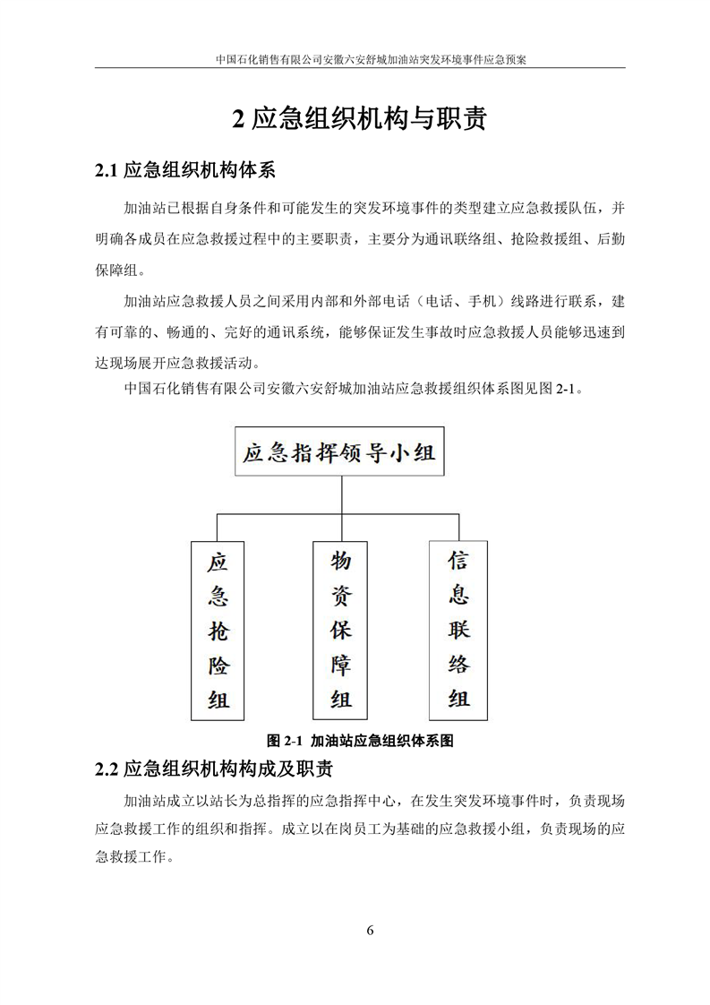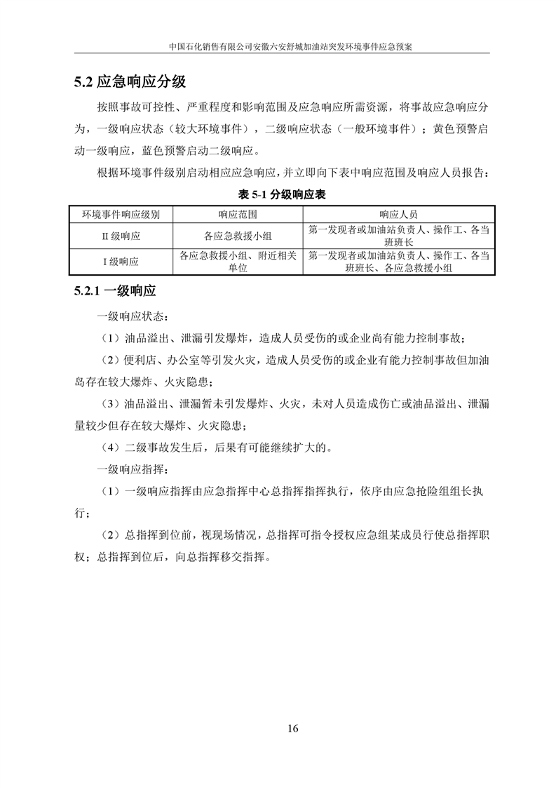 中国石化销售有限公司安徽六安舒城加油站突发环境事件应急预案 |