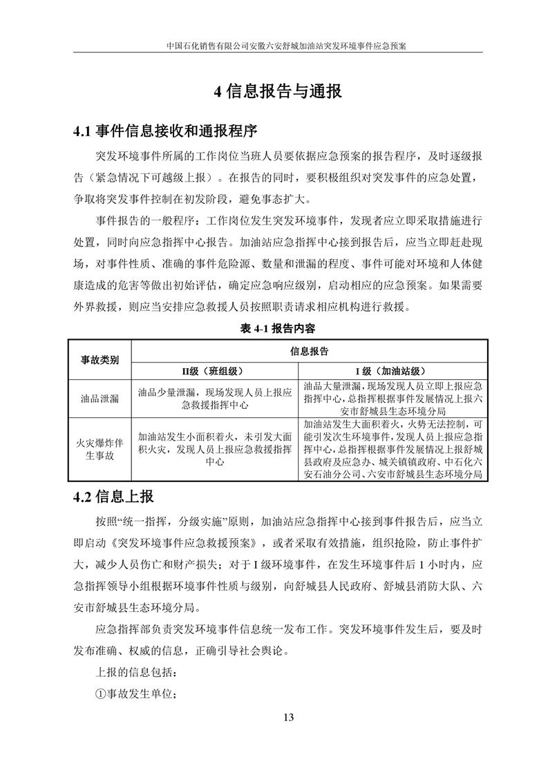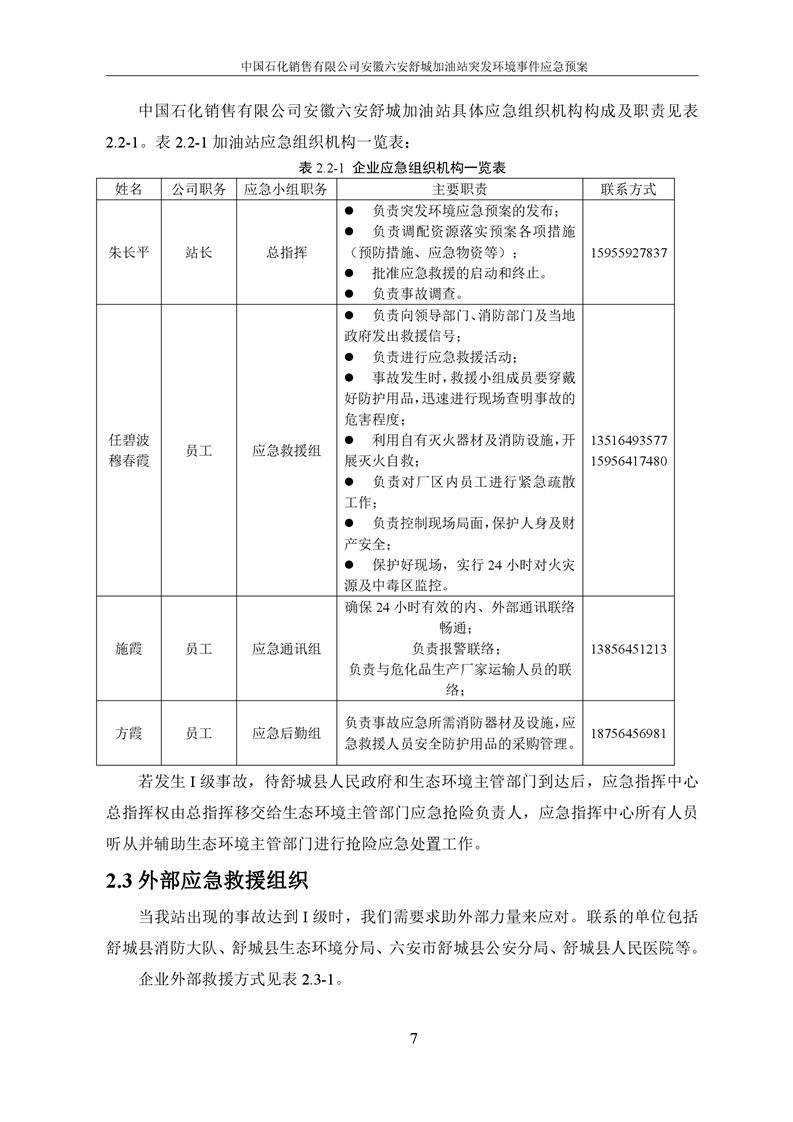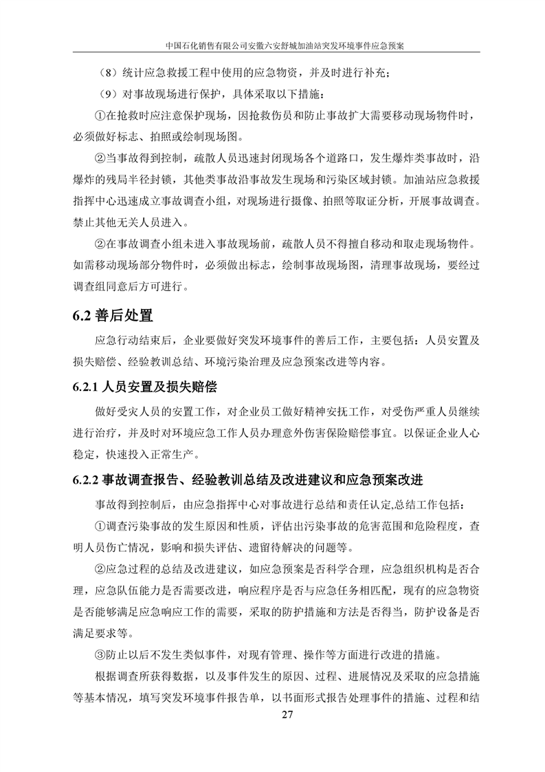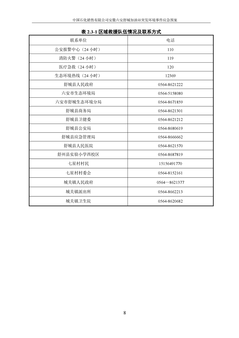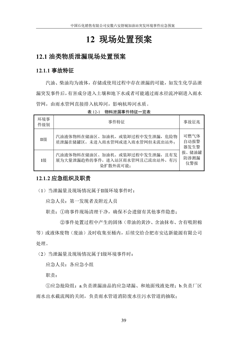中国石化销售有限公司安徽六安舒城加油站突发环境事件应急预案 |