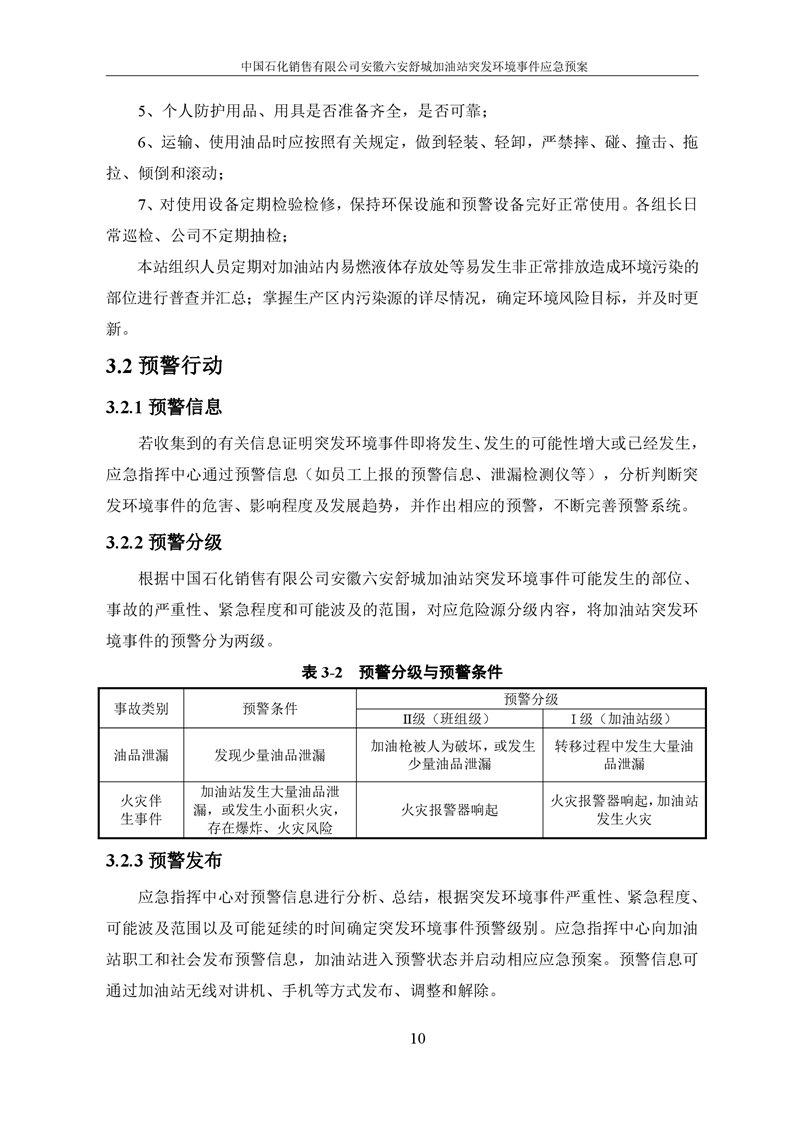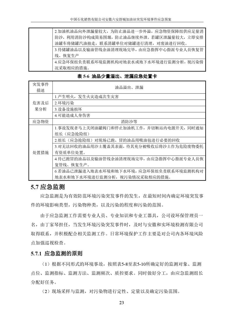 中国石化销售有限公司安徽六安舒城加油站突发环境事件应急预案
