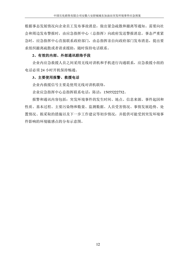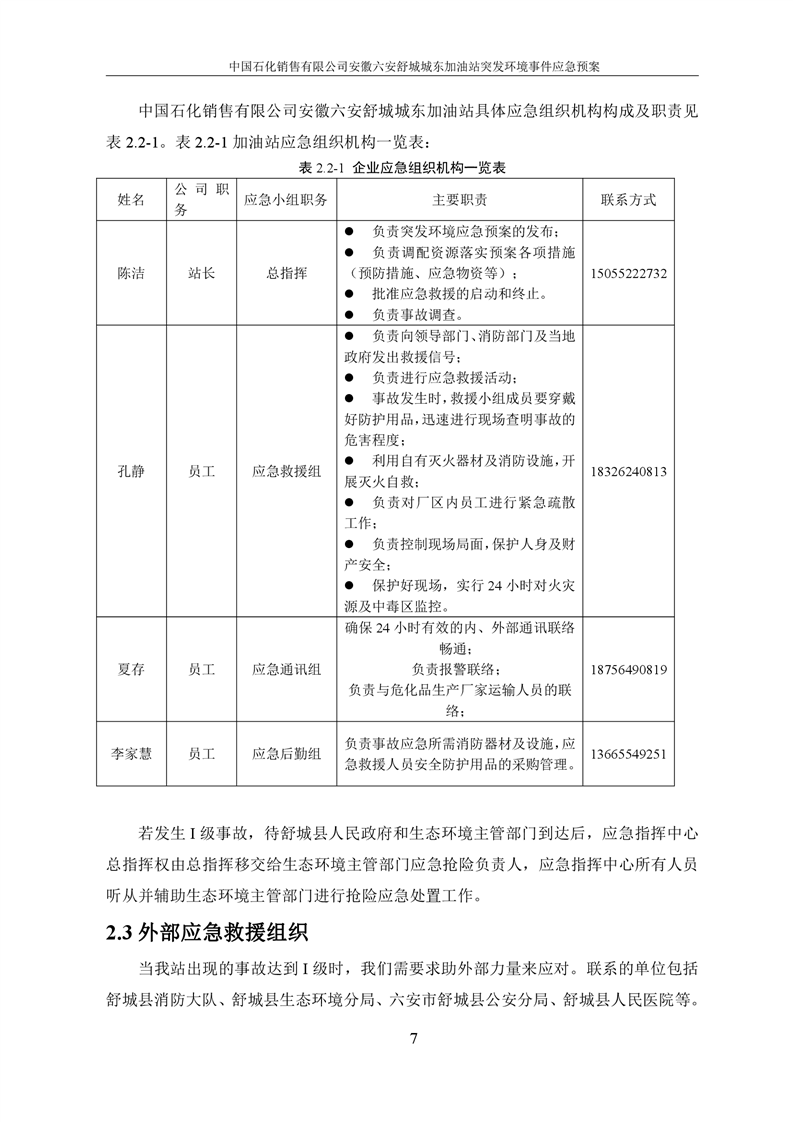 安徽六安舒城城东加油站突发环境事件应急预案