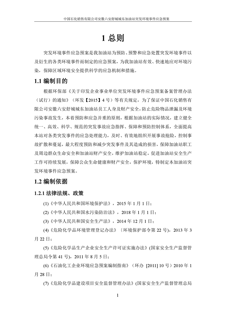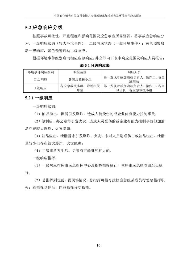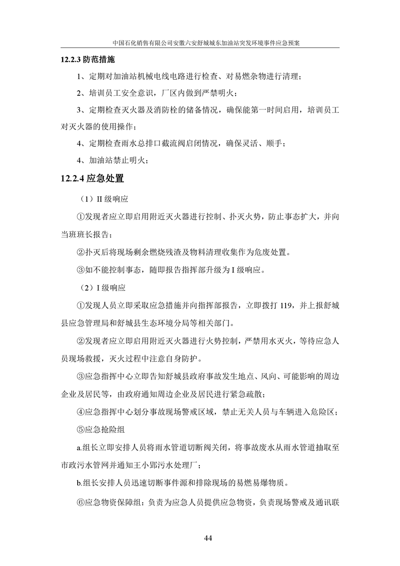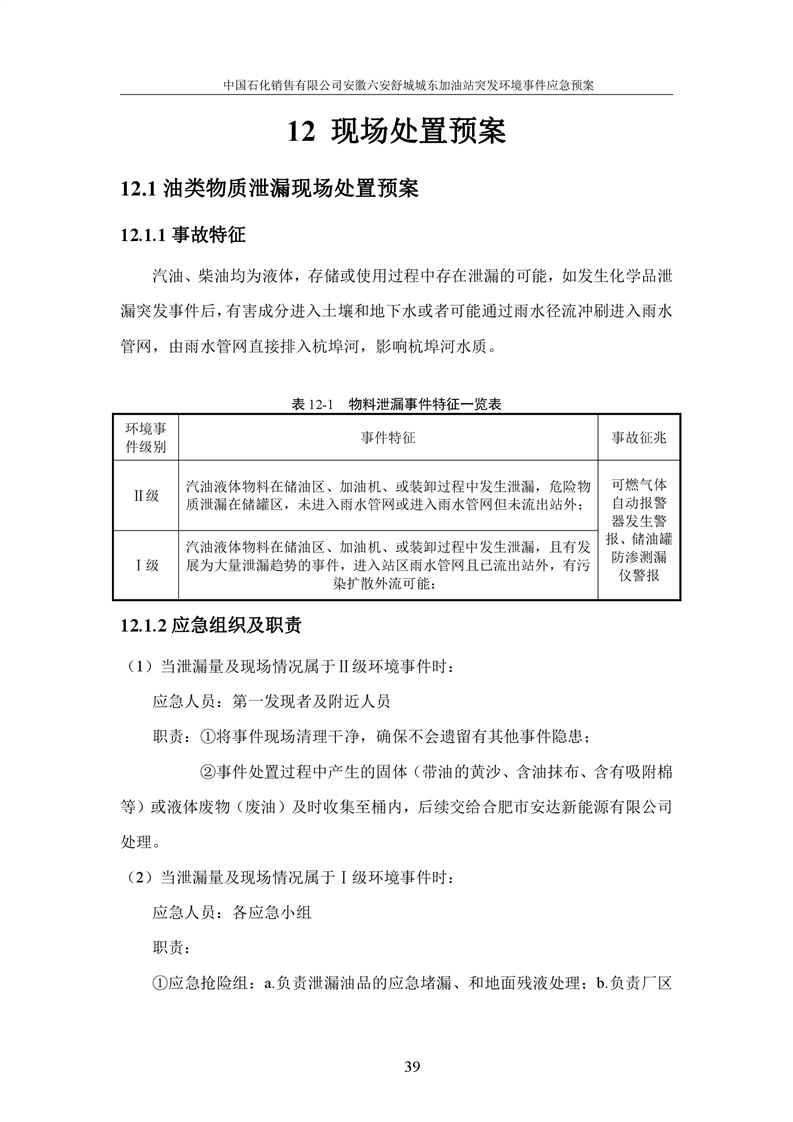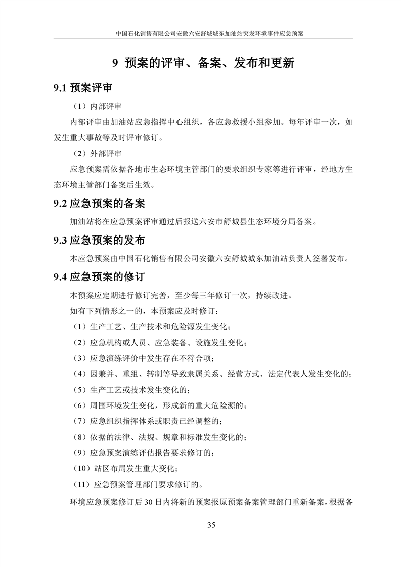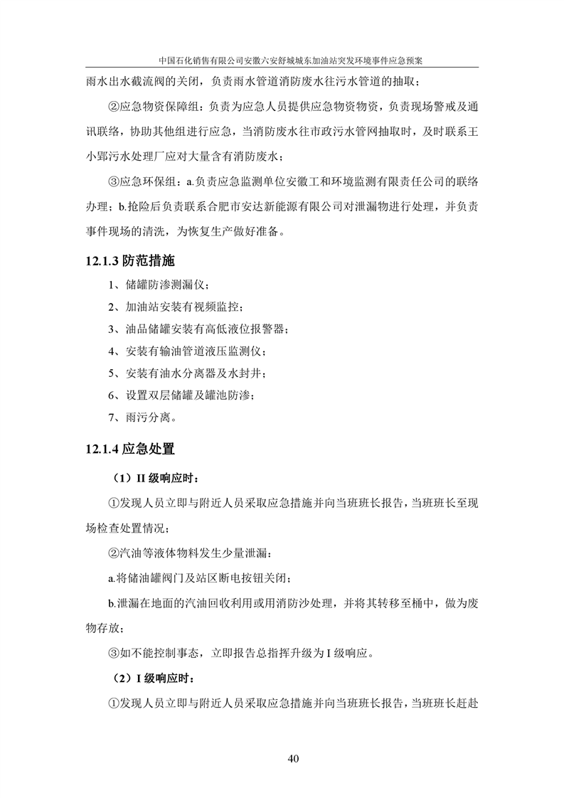 安徽六安舒城城东加油站突发环境事件应急预案 |
