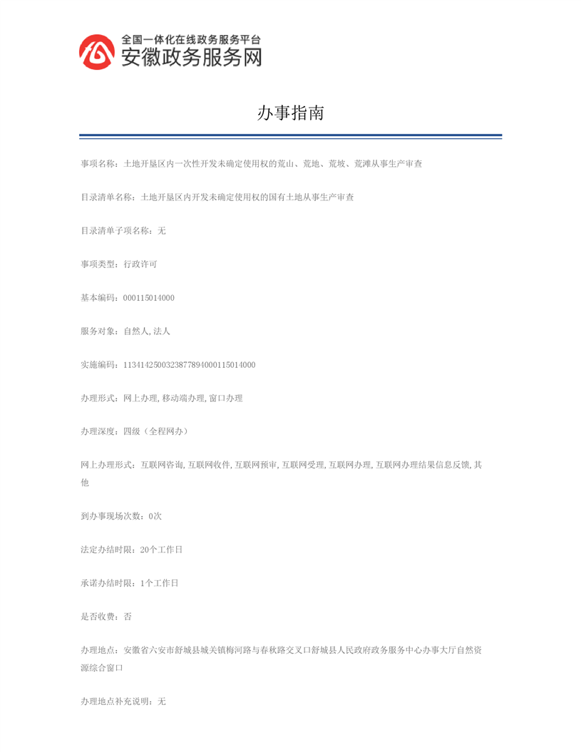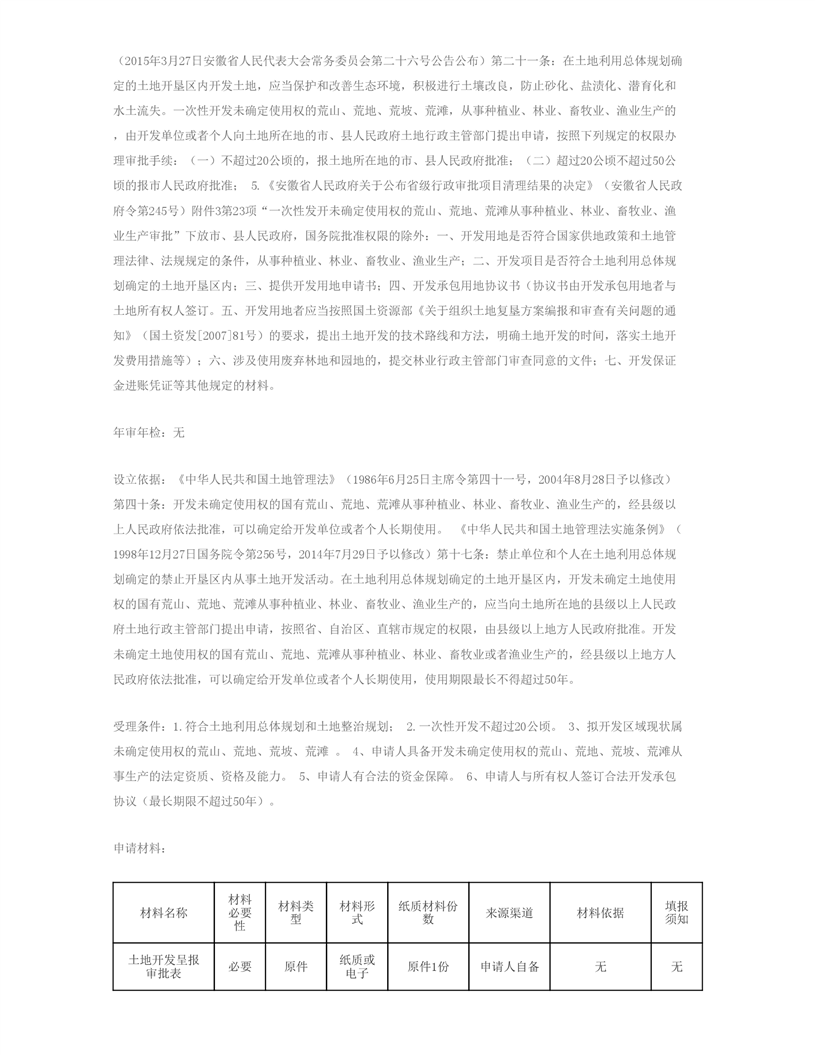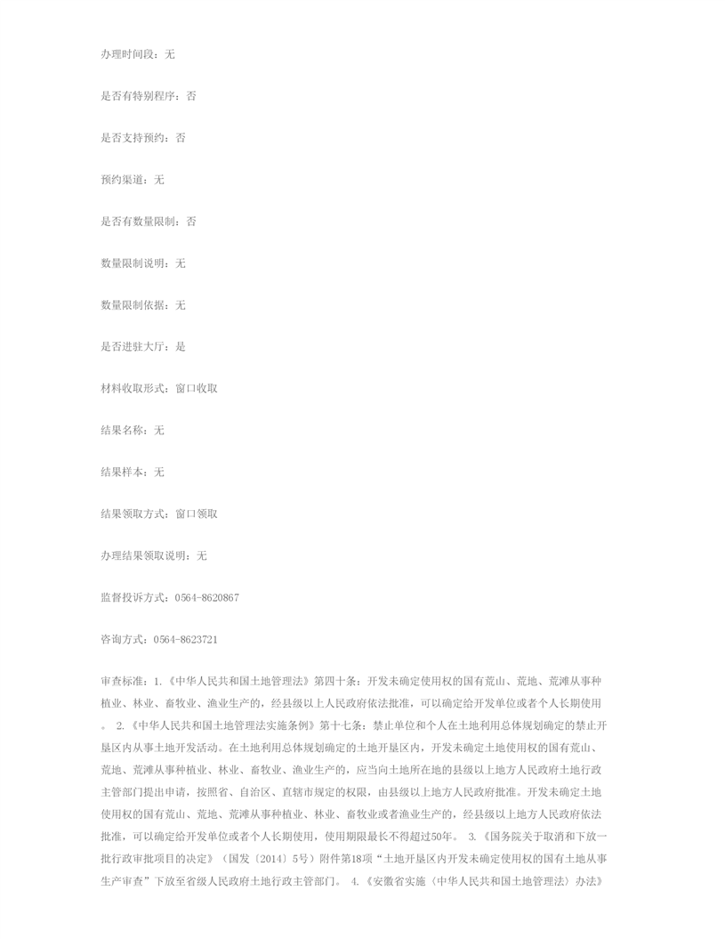 开发未确定使用权的国有荒山、荒地、荒滩从事生产审查 |