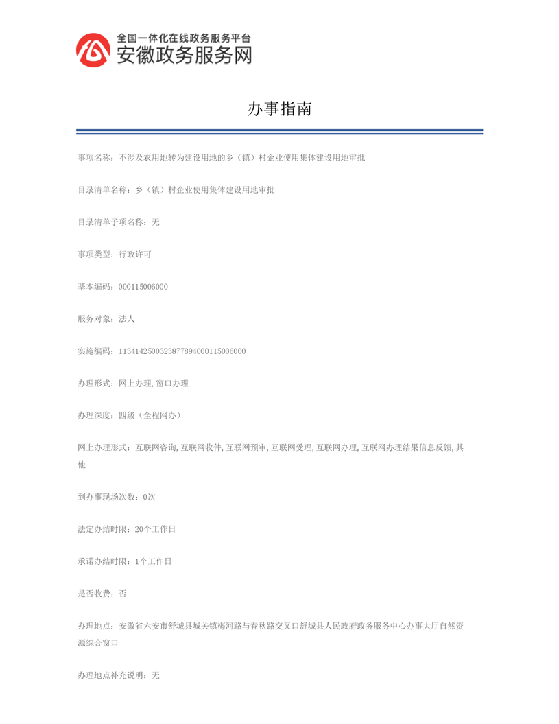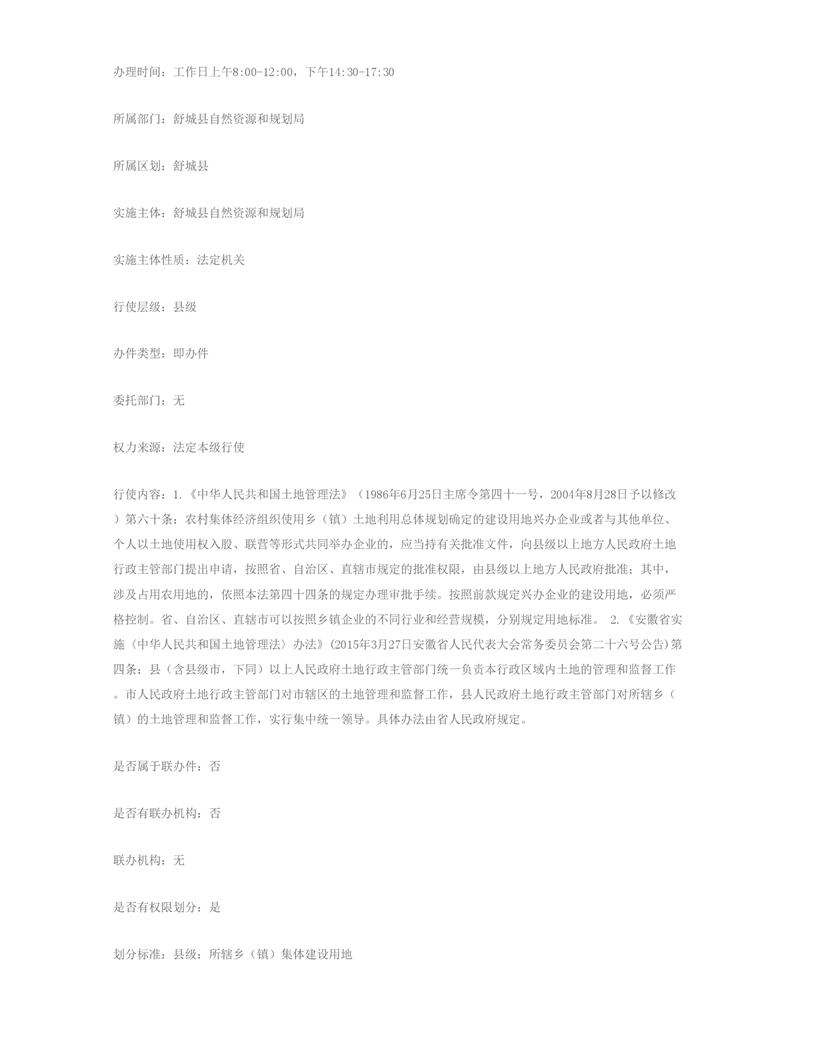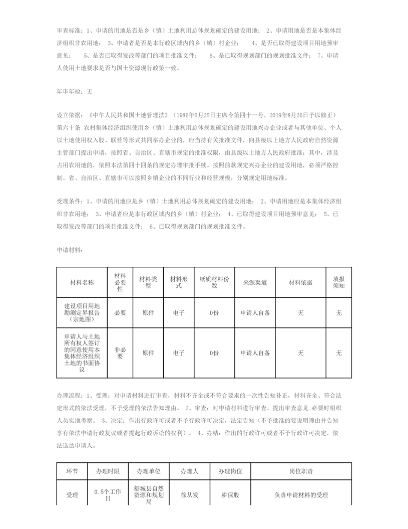 乡(镇)村企业使用集体建设用地审批 |